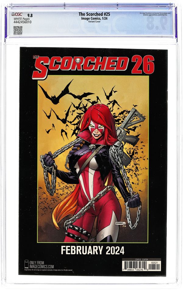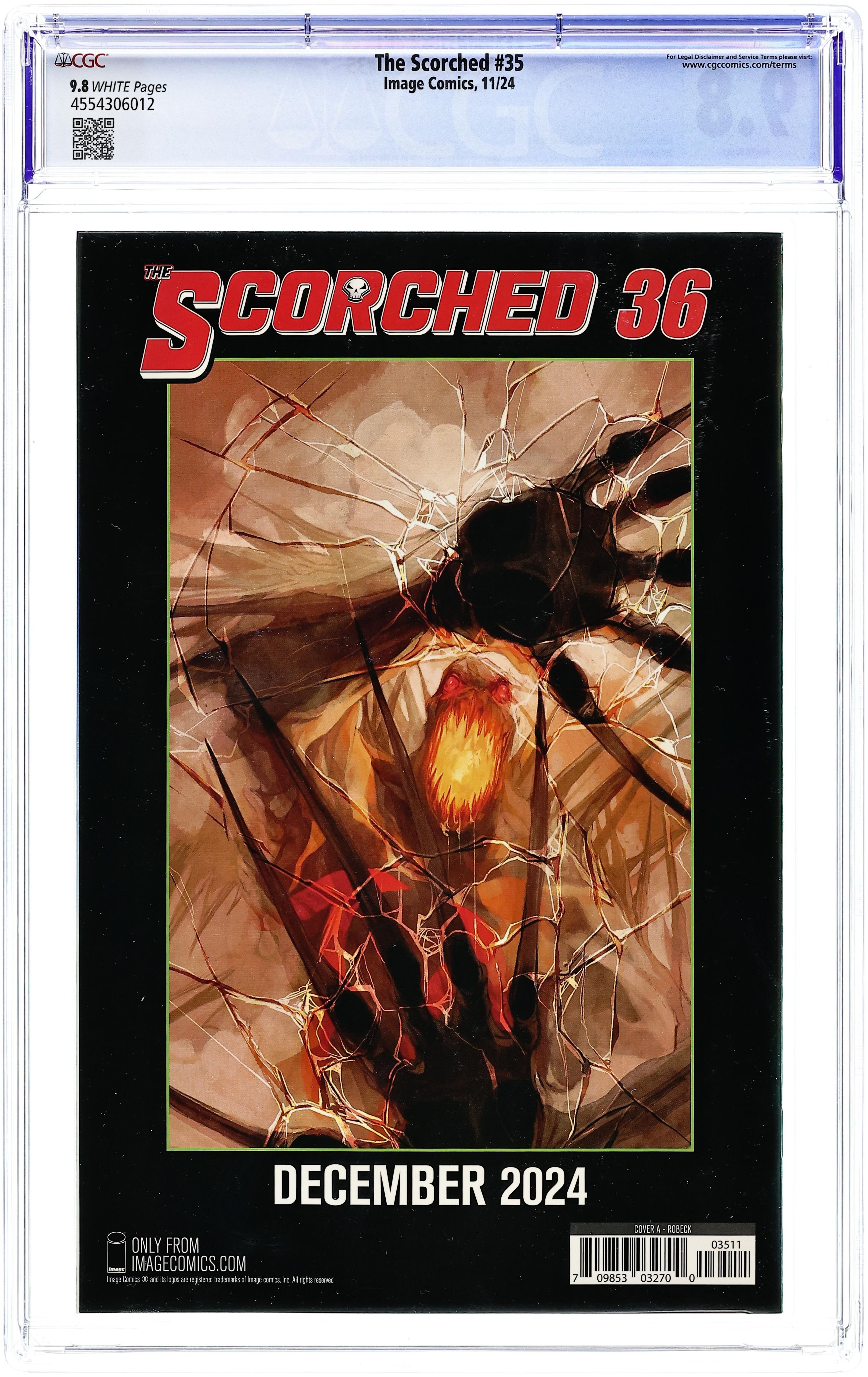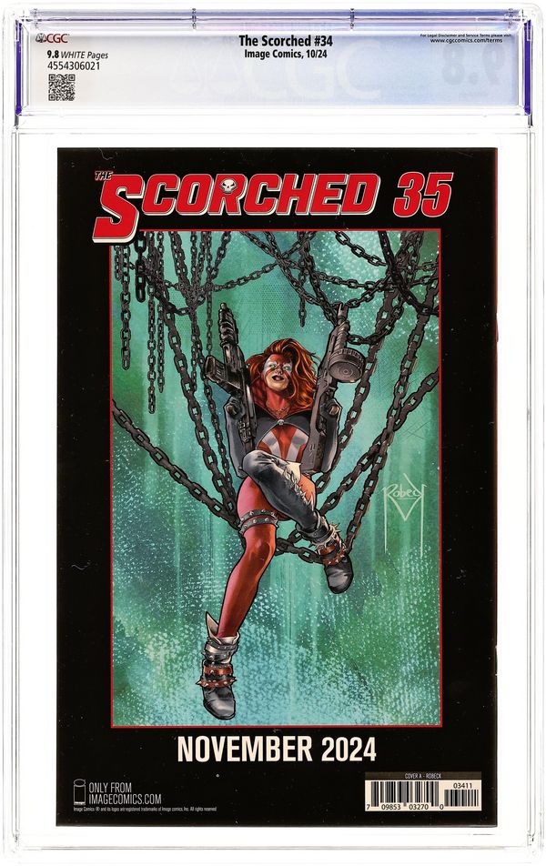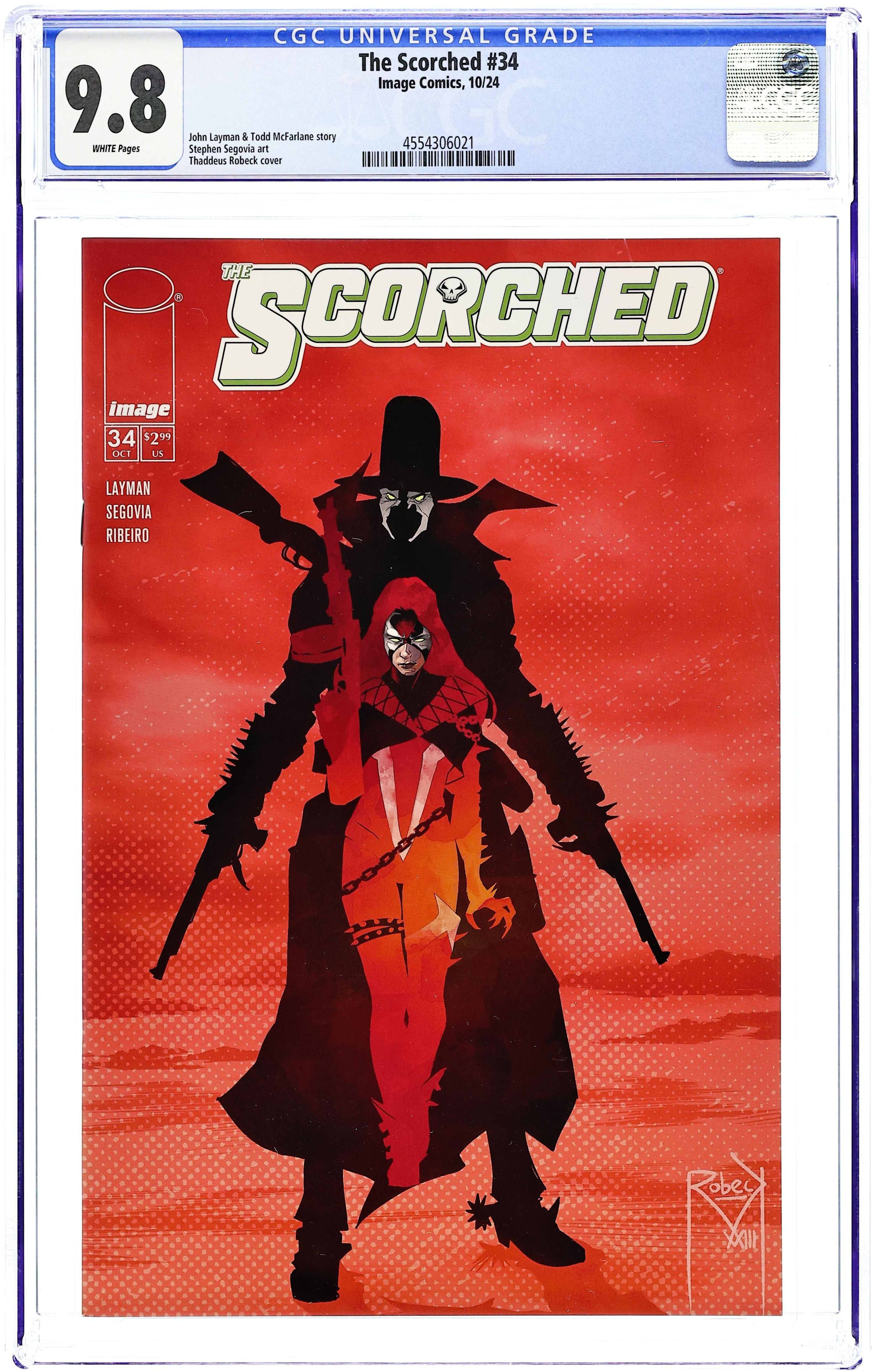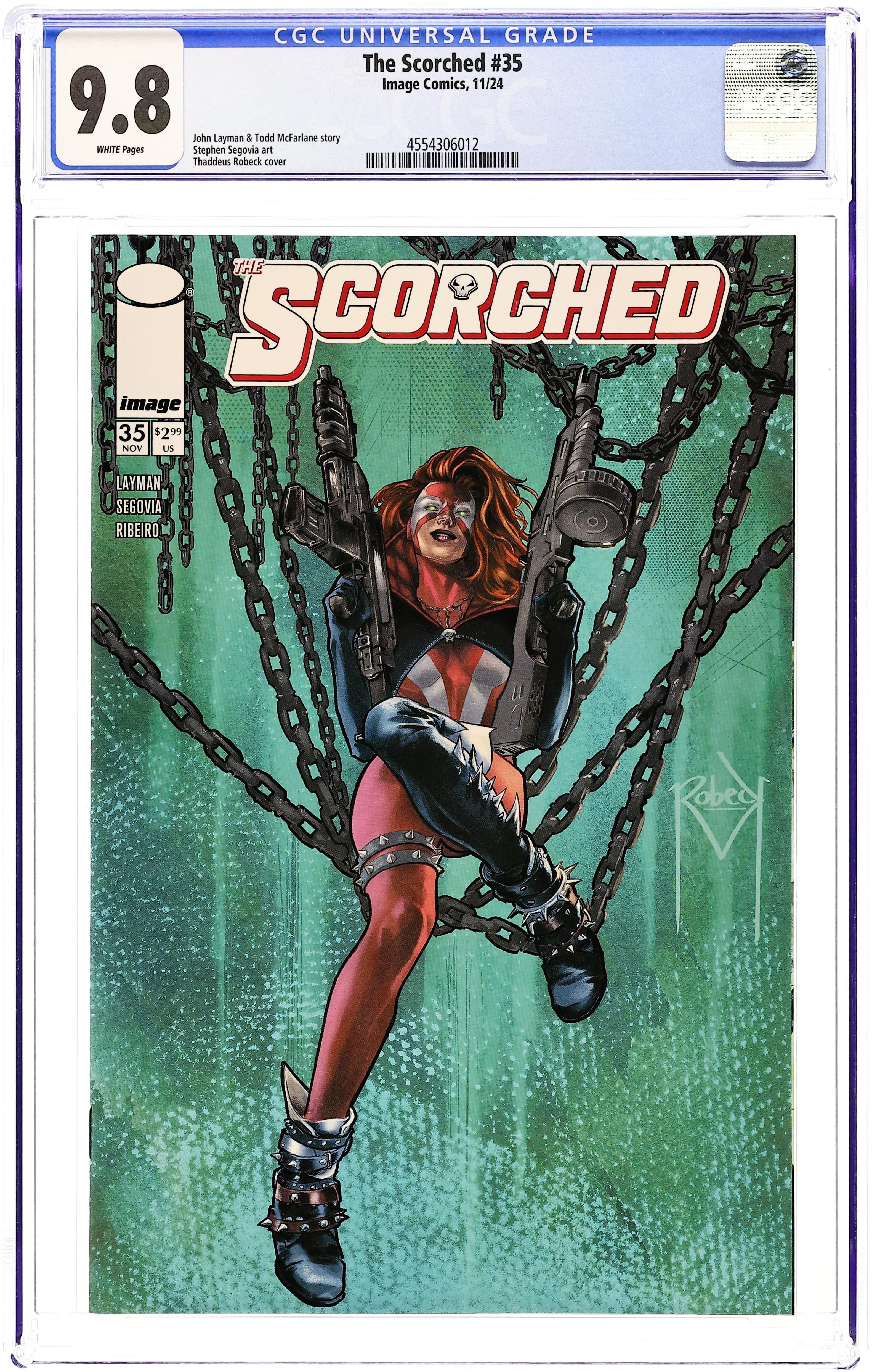 Written by Sean Lewis. Art by Stephen Segovia. Cover by Valerio Giangiordano. The final confrontation with K and his Sin Devourers is at hand. The Scorched team is clearly outmatched, but someone with a message from the future arrives to help. 24 pages, full color. Cover price $2.99.