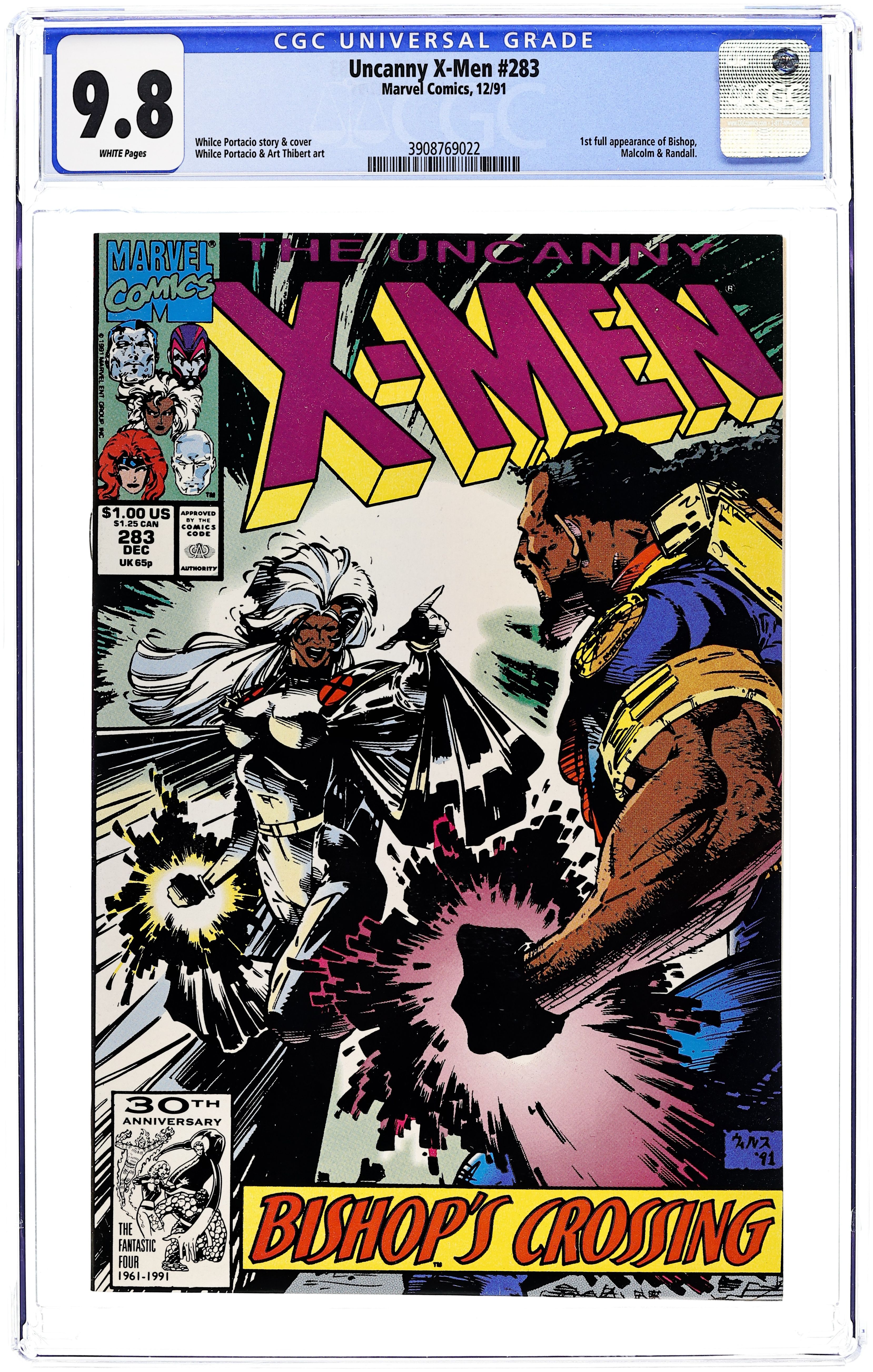 Ends Jan 26 9:56 PM CST Bid History 4 bids Current Bid $16 Your Secret Max Bid If you'd like to bid, please log in or register. 1st full appearance of Bishop. "Bishop's Crossing!" Story by Whilce Portacio and John Byrne. Art by Whilce Portacio and Art Thibert. His name is Bishop, and he's arrived here from the future to set the wrong things right. Even if he has to go through the X-Men to do it. Plus, whatever happened to Jean Grey and Emma Frost? 36 pgs. Cover price $1.00.