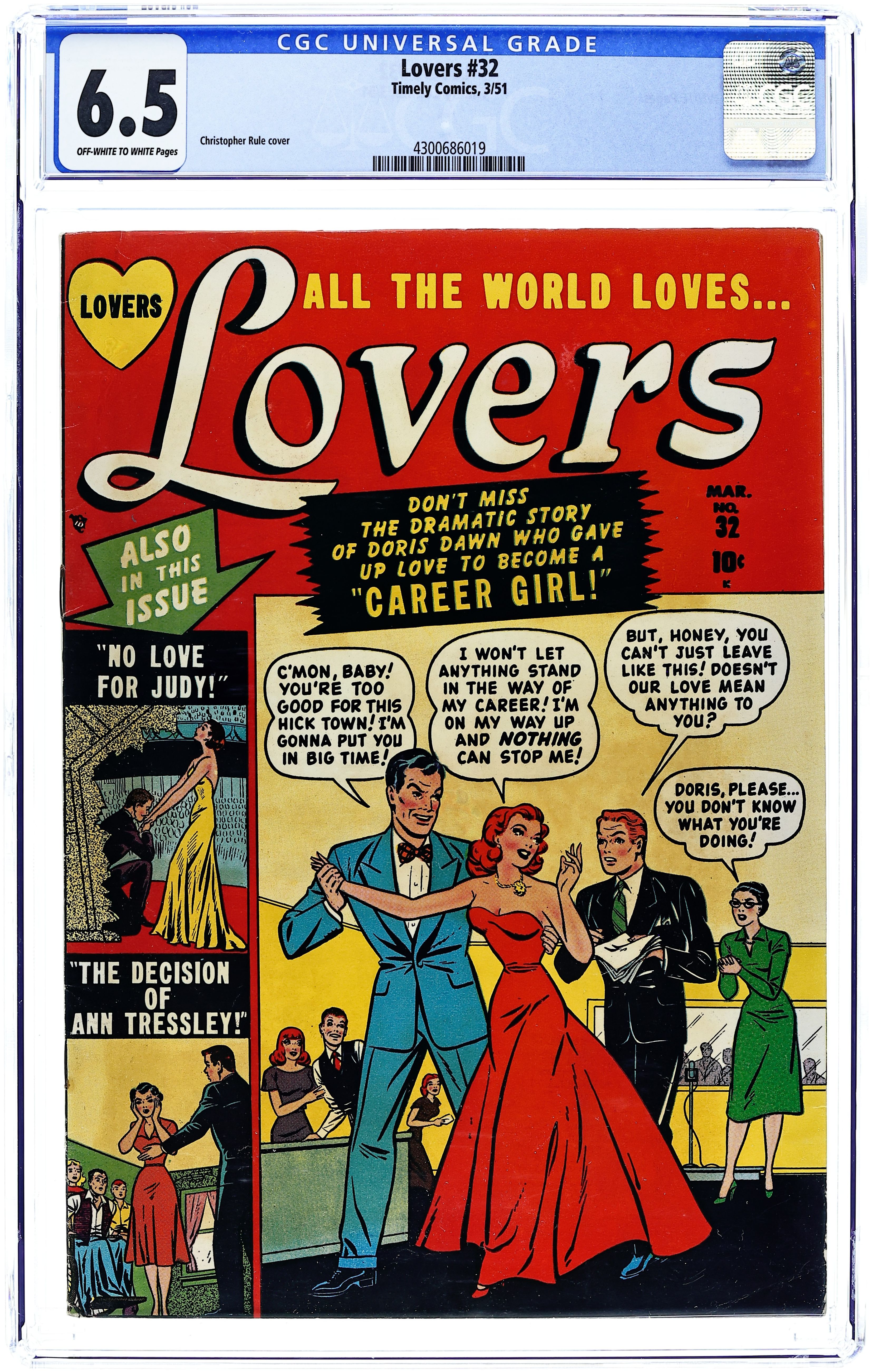 Cover inks by Christopher Rule. Stories by unknown. Art by Christopher Rule and unknown. Don't miss the dramatic story of Doris Dawn, who gave up love to become a..."Career Girl!" with splash art by Christopher Rule. Also in this issue: "The Decision of Ann Tressely!" with splash art by Christopher Rule; "No Love for Judy!"; and 2-page text story "The Kewpie Doll"! 32 pages, full color. Cover price $0.10.