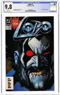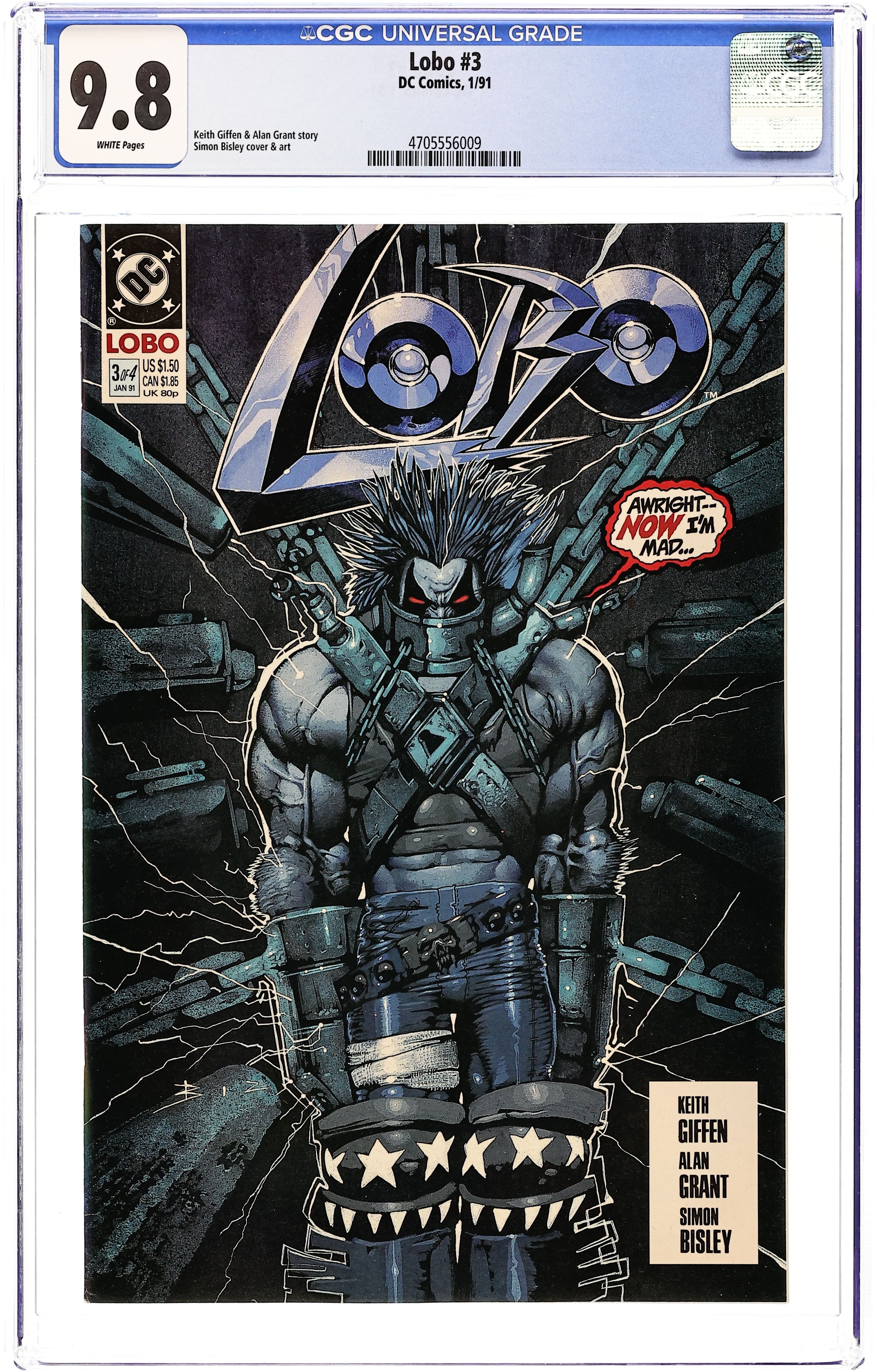 Lobo's pursuers are closing in on him, but he can't be bothered with that right now, not when he and Miss Tribb are embroiled in the deadliest contest of his career...a spelling bee. Written by Keith Giffen and Alan Grant, with art and painted cover by Simon Bisley. New Format. Cover price $1.50.