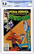 Direct Edition. "Humbugged!" Script by David Michelinie. Art by Todd McFarlane. Cover by Todd McFarlane. The pesky Humbug is back! And the insect-infatuated villain wants to resume his research on the ESU campus! But the crazy entomologist runs into his most-reviled insect first: the Spectacular Spider-Man! Let the extermination begin! Meanwhile at Bedford Towers, Peter and Mary Jane's neighbor, Jonathon Caesar, is acting stranger and stranger...perhaps even a bit obsessive! Cameo appearances by the Chameleon, Aunt May, and the Black Cat. (Notes: The Humbug previously appeared in Web of Spider-Man 19. McFarlane's cover is a tribute to the 50th anniversary of Superman and the cover of Action Comics #1.) 36 pgs. Cover price $1.00.