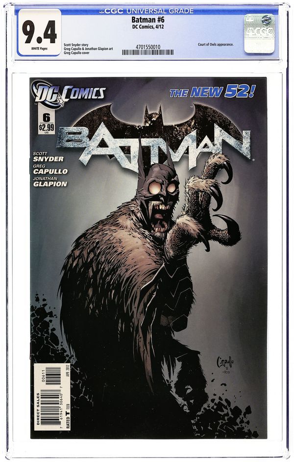 Cover by Greg Capullo (W) Scott Snyder (A) Greg Capullo, Jonathan Glapion Trapped far beneath Gotham City and hunted by the Talon - the Court of Owls' unstoppable killer - Batman lies bleeding and broken. With no way out and no one to help, is this the end for The Dark Knight? Cover price $2.99.