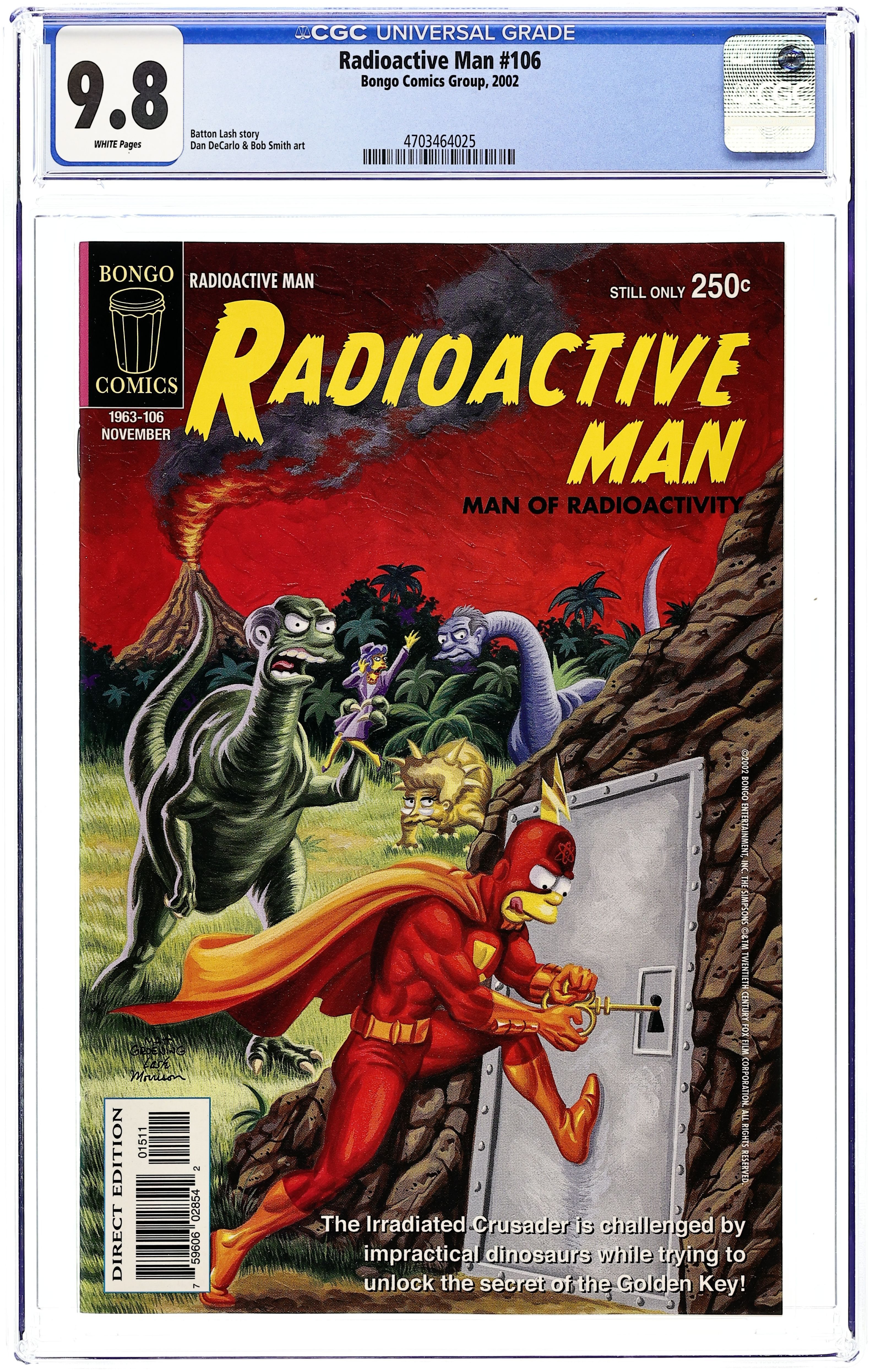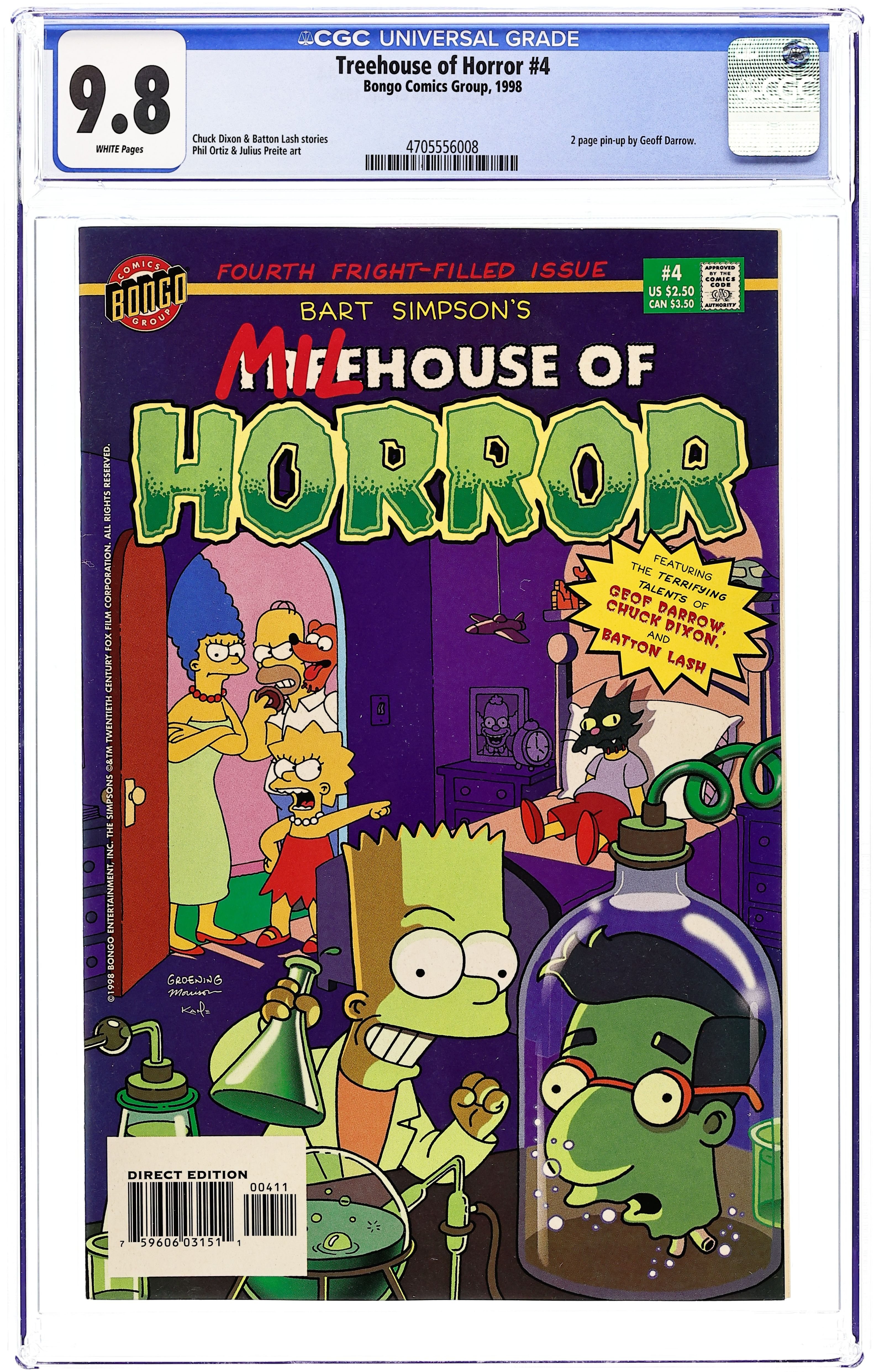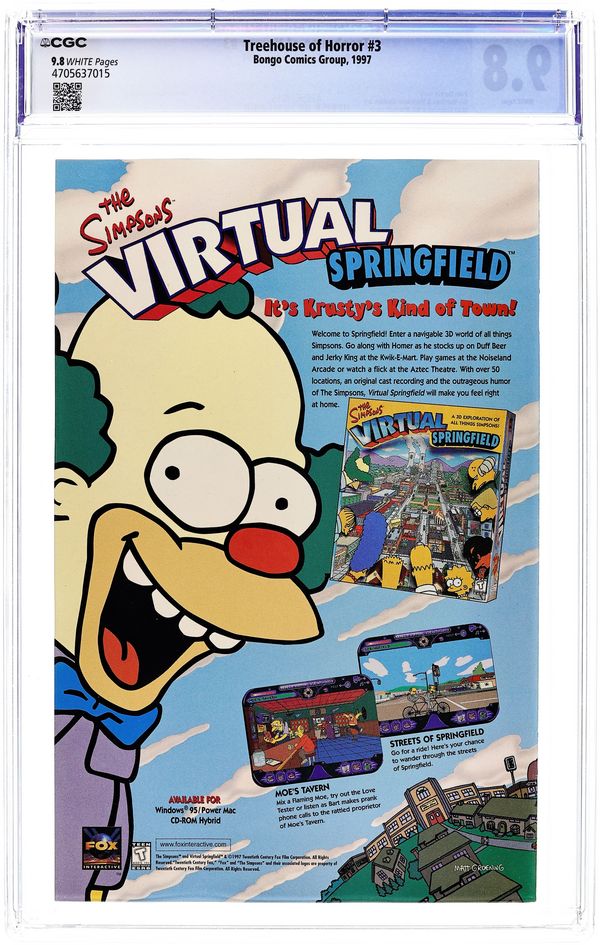Written by Chuck Dixon. Art by Phil Ortiz and Tim Bavington. Cover by Bill Morrison. The Christmas tree bought by the Simpsons is actually the vanguard for an alien invasion. Written by Batton Lash. Art by Julius Priete and Tim Bavington. Rigel Four, Springfield Zero illustration by Geof Darrow. Based on The Simpsons TV show. Cover price $2.50.
