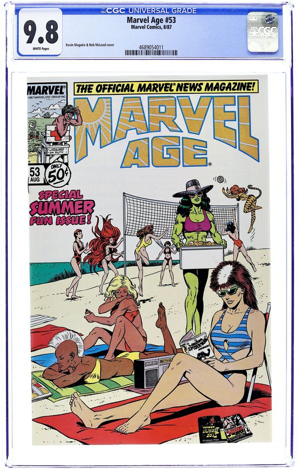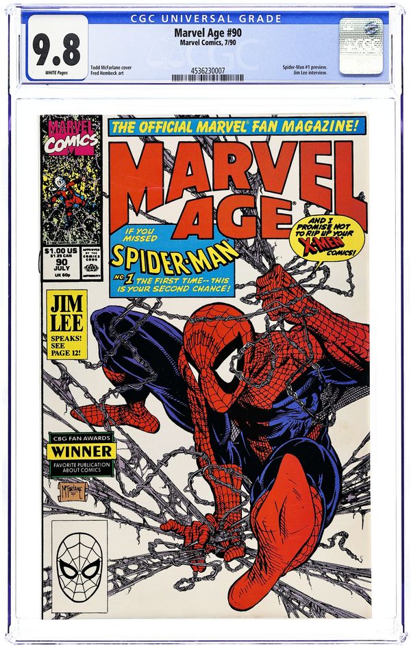 Direct Edition. Pro File: Todd McFarlane; interview with Jim Lee on the X-Men; a look at the Foolkiller limited series, with comments from Steve Gerber and Renee Witterstaetter; 'Willie Lumpkin' strip by Stan Lee and Dan DeCarlo; 2-page Fred Hembeck strip; a look at Spider-Man, with comments from Todd McFarlane; 5-page preview of Spider-Man by McFarlane; Marvel Age of Comics: 1981 (Part V); The Many Faces of Daredevil. Spider-Man cover by McFarlane. Cover price $1.00.