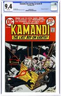 1st appearance and origin of Kamandi. "The Last Boy on Earth." Script and pencils by Jack Kirby, inks by Mike Royer. Cover by Kirby and Royer. A series that borrows many concepts from Planet of the Apes, Kamandi takes place in an alternate future where animals have mutated into bipedal beings of intelligence and where humans are treated like savage beasts. Kamandi avenges the death of his grandfather, who was killed by wolves, but is then captured by a tiger named Caesar, who turns him over to dog-scientist Dr. Canus. Canus proceeds to help Kamandi, and this is where the so-called last boy on earth hooks up with Ben Boxer, a mutated human who can turn to living metal. Cover price $0.20.