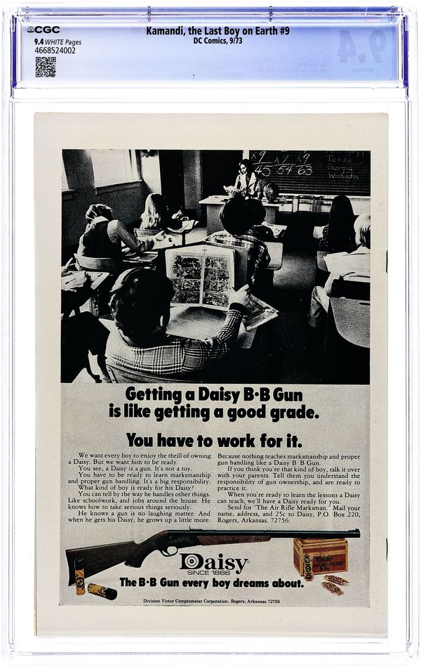 Ends Jan 14 7:25 PM CST Bid History 6 bids Current Bid $51 Your Secret Max Bid If you'd like to bid, please log in or register. "The Devil." Script and pencils by Jack Kirby, inks by Mike Royer. Cover by Kirby and Royer. Kamandi, lost at sea, battles leopards. After escaping, he must face a giant insect (called the "Devil"). Cover price $0.20.