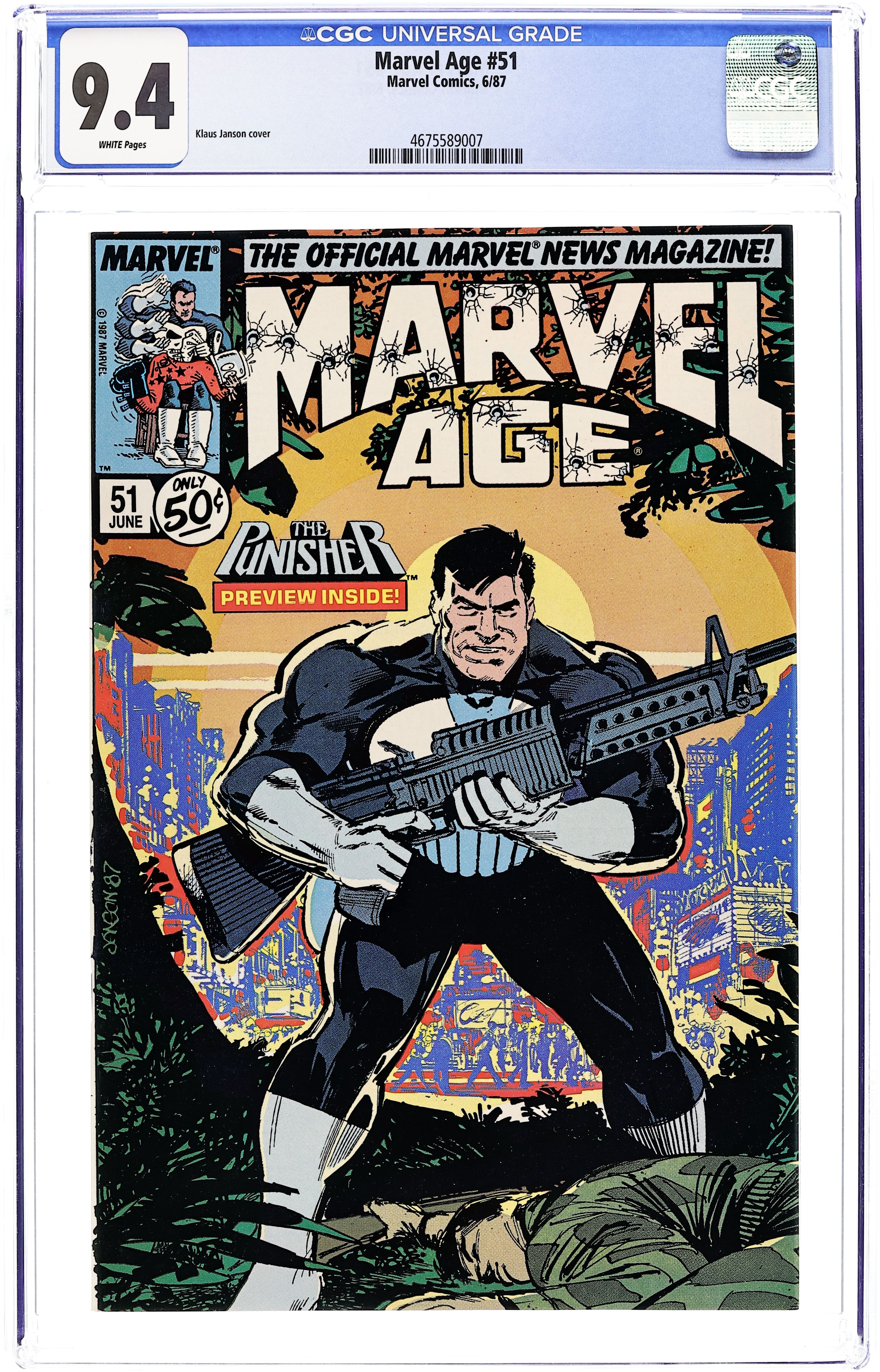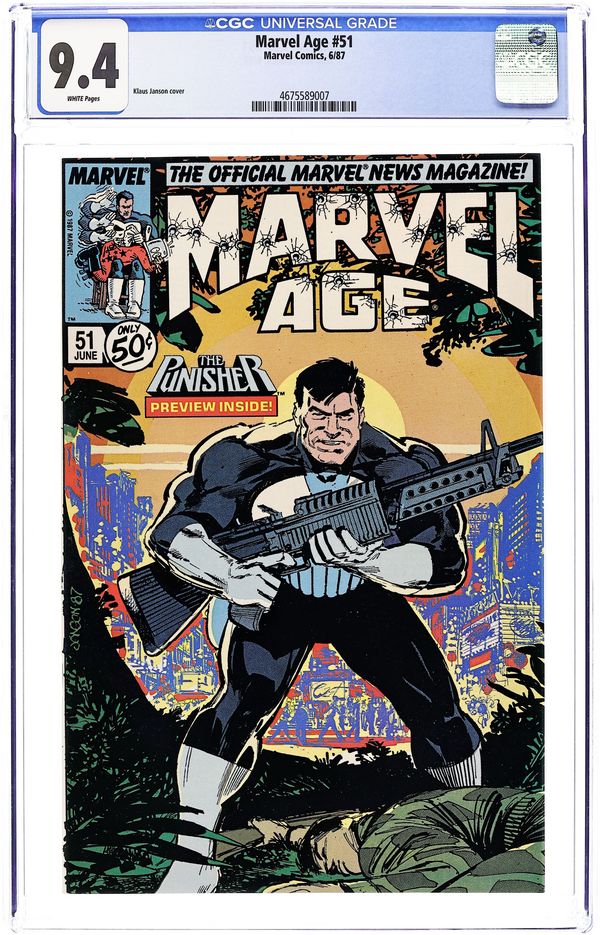 Article on new direction for The Incredible Hulk, starting with #331; 2-page Fred Hembeck strip; Mike Baron and Klaus Janson discuss The Punisher ongoing series; The Punisher. Cover by Klaus Janson. Cover price $0.50.