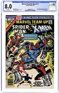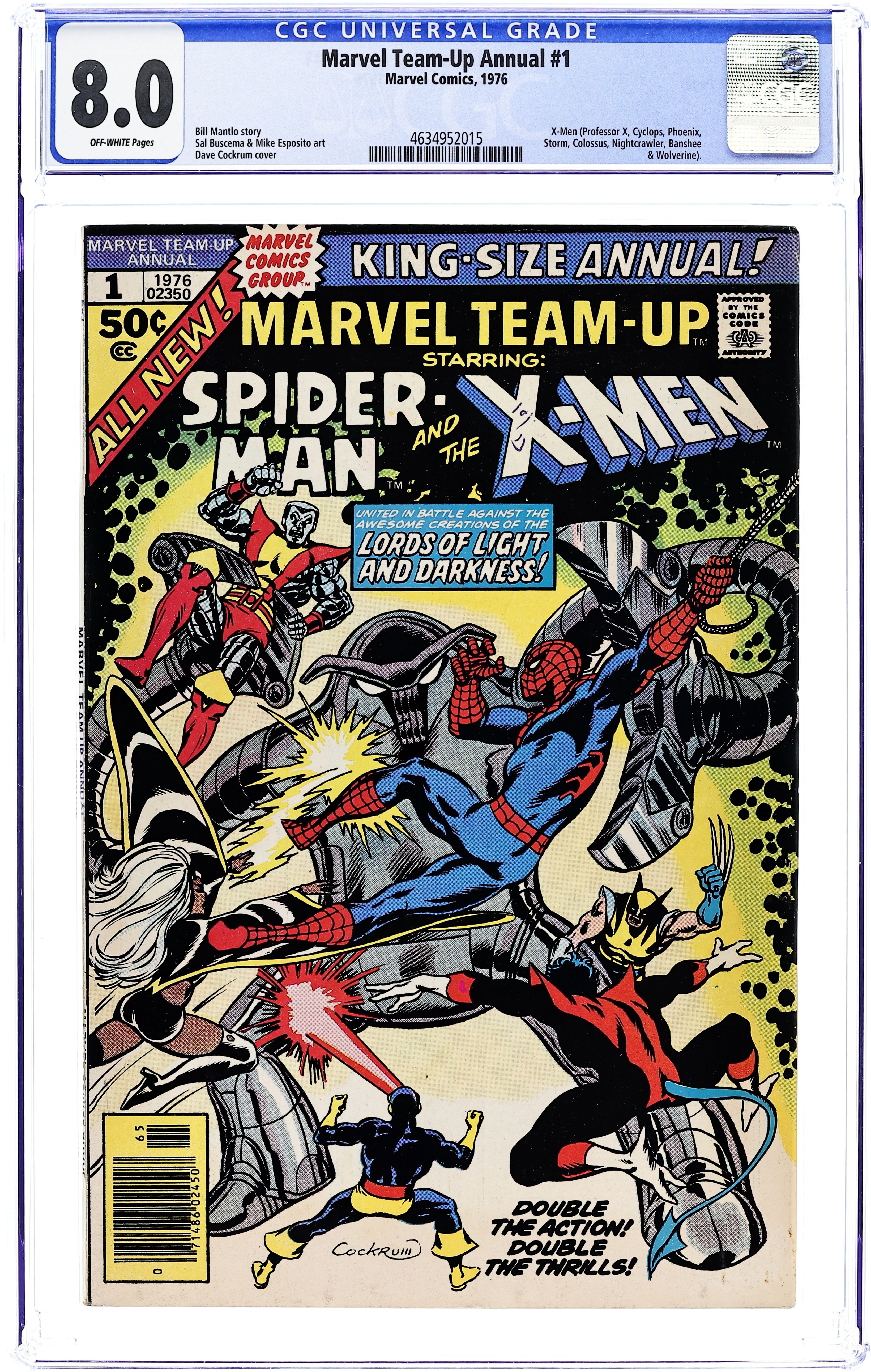 "The Lords of Light and Darkness!" Guest-starring Spider-Man and the X-Men. Plot by Chris Claremont, Bill Mantlo, and Bonnie Wilford. Script by Bill Mantlo. Art by Sal Buscema (breakdowns) and Mike Esposito (finishes). Cover by Dave Cockrum. Something has gone terribly wrong at a top secret government installation in the Nevada desert! Meanwhile in the same vicinity, the World Conference on Man-Made Mutation is taking place onboard a 747 airplane! The Daily Bugle sends a photographer, Peter Parker, to cover the airborne conference; and Professor Xavier and his students are also present to keep an eye on the proceedings! But when a group of robots attacks the plane in mid-air, the Amazing Spider-Man meets the New X-Men for the first time! After safely landing the plane, the heroes discover the source of the problem: an underground "nest" teeming with deadly radiation! However, unbeknownst to the web-slinger and the X-Men, eight mystically-powered beings are waiting down below...and they want the power of Phoenix! Can your friendly neighborhood Spider-Man and the Uncanny X-men beat the Lords of Light and Darkness? And prevent a global meltdown? X-men lineup: Banshee, Colossus, Cyclops, Nightcrawler, Phoenix, Storm, and Wolverine. (Notes: The wall-crawler's southwestern adventure continues in Marvel Team-Up 53. This issue was the first appearance of the New X-Men outside their own title. This story was reprinted in Marvel Tales 235 and 236.) 48 pages Cover price $0.50.