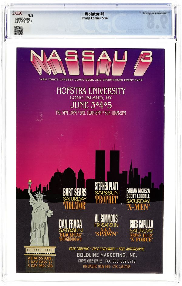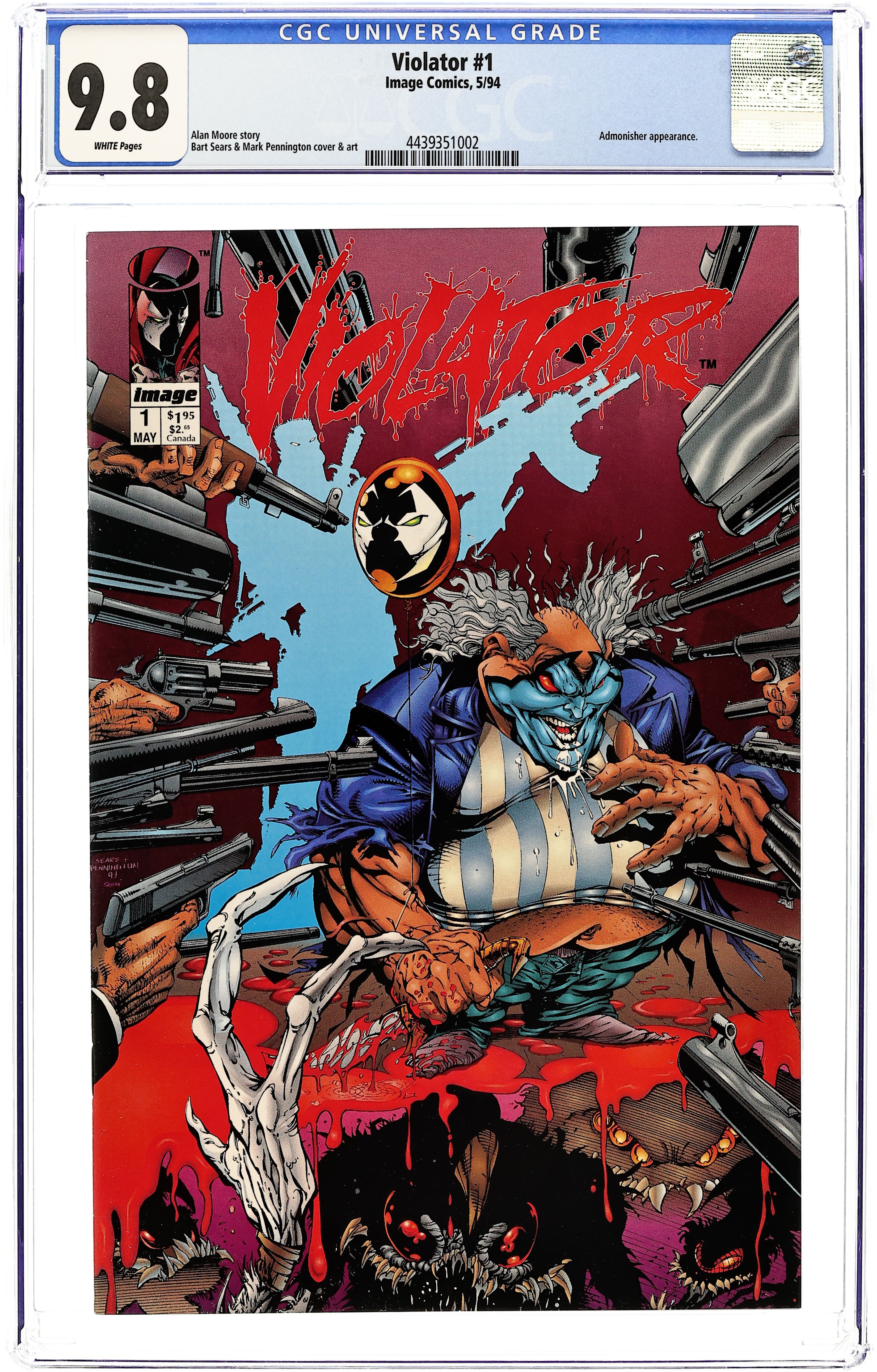 Starts Jan 3 Direct Edition. Cover pencils by Bart Sears, inks by Mark Pennington. "The World, Part 1 of 3," script by Alan Moore, pencils by Bart Sears, inks by Mark Pennington; Violator's brothers (Vacillator, Vindicator, Vandalizer and Vaporizer) come to Earth to kill Violator; Mobsters hire Admonisher to kill Violator. Behind the Scenes article by Terry Fitzgerald, pencils by Alan Moore and Bart Sears. 36 pgs., full color. $1.95. Cover price $1.95.