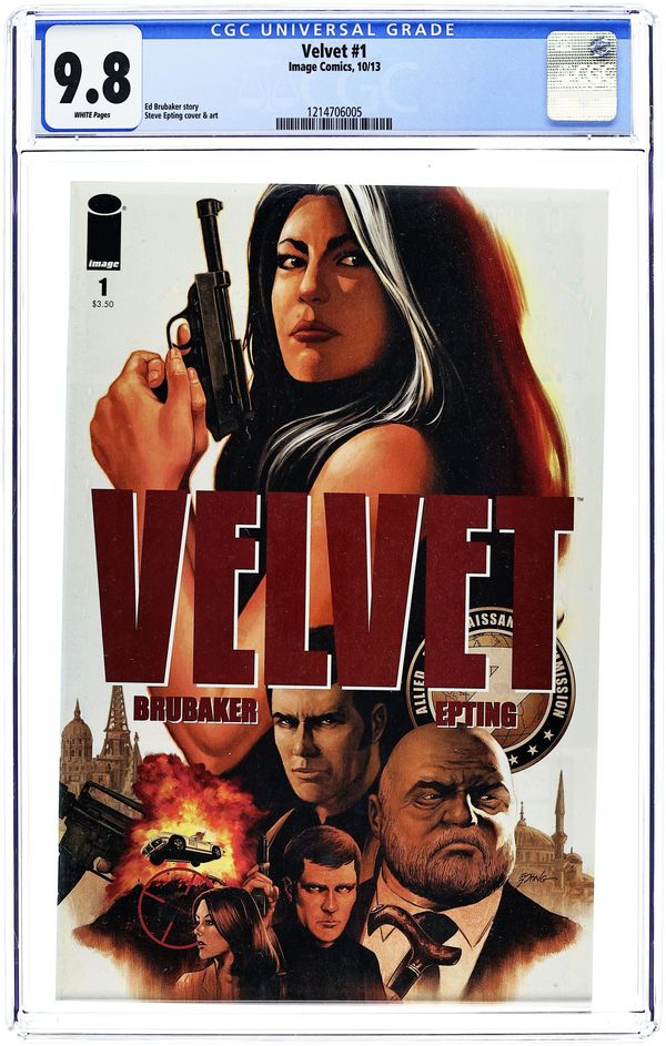 (W) Ed Brubaker (A) Steve Epting, Bettie Breitweiser (CA) Steve Epting ED BRUBAKER and STEVE EPTING redefined Captain America with the 'Winter Soldier' saga... and everything they've done so far has been leading to VELVET! When the world's best secret agent is killed, Velvet Templeton, the Personal Assistant to the Director of the Agency, is drawn off her desk and back into the field for the first time in nearly 20 years... and is immediately caught in a web of mystery, murder and hi-octane action. Sexy and provocative, with a dark twist on the spy genre, this EXTRA-LENGTH first issue by two of the industry's best-selling creators will knock you out! Cover price $3.50.