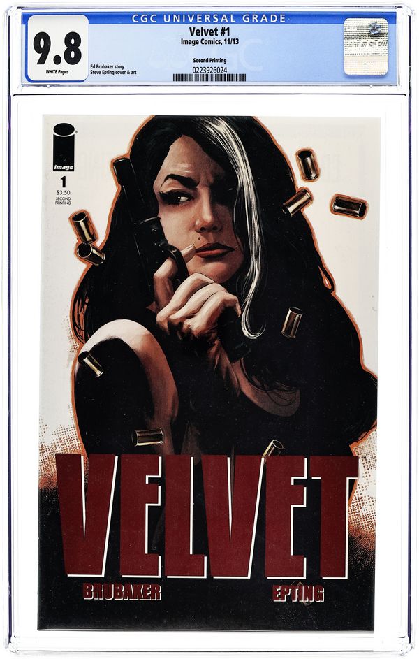 SECOND PRINTING (W) Ed Brubaker (A) Steve Epting, Bettie Breitweiser (CA) Steve Epting ED BRUBAKER and STEVE EPTING redefined Captain America with the 'Winter Soldier' saga... and everything they've done so far has been leading to VELVET! When the world's best secret agent is killed, Velvet Templeton, the Personal Assistant to the Director of the Agency, is drawn off her desk and back into the field for the first time in nearly 20 years... and is immediately caught in a web of mystery, murder and hi-octane action. Sexy and provocative, with a dark twist on the spy genre, this EXTRA-LENGTH first issue by two of the industry's best-selling creators will knock you out! Cover price $3.50.