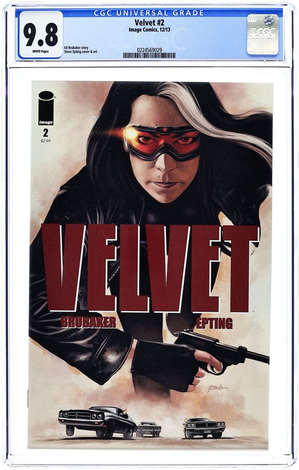 First printing - Written by Ed Brubaker. Art by Steve Epting, Bettie Breitweiser. Cover by Steve Epting. On the run from her own agency, Velvet must find out what really got Agent X-14 killed, and the only way to do that is retrace his steps... and that's a pathway of dead bodies, ruined lives, and angry mercenary soldiers. And along the way, one of Velvet's darkest secrets is revealed. Don't miss the second issue of this white-hot new series, from the hit creators of the CAPTAIN AMERICA: WINTER SOLDIER saga! Cover price $2.99.