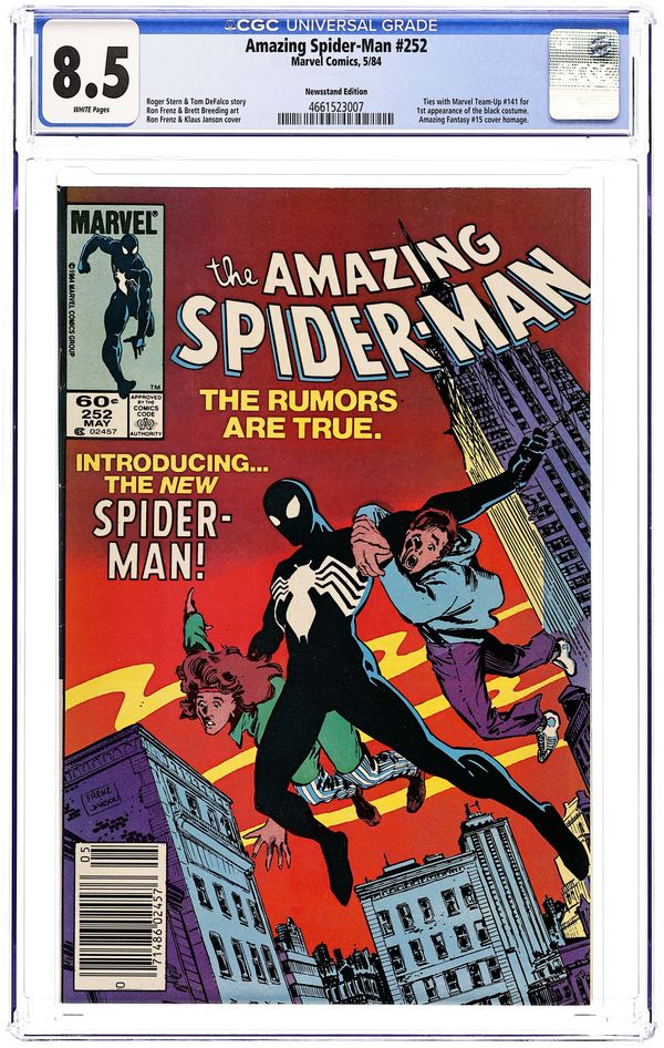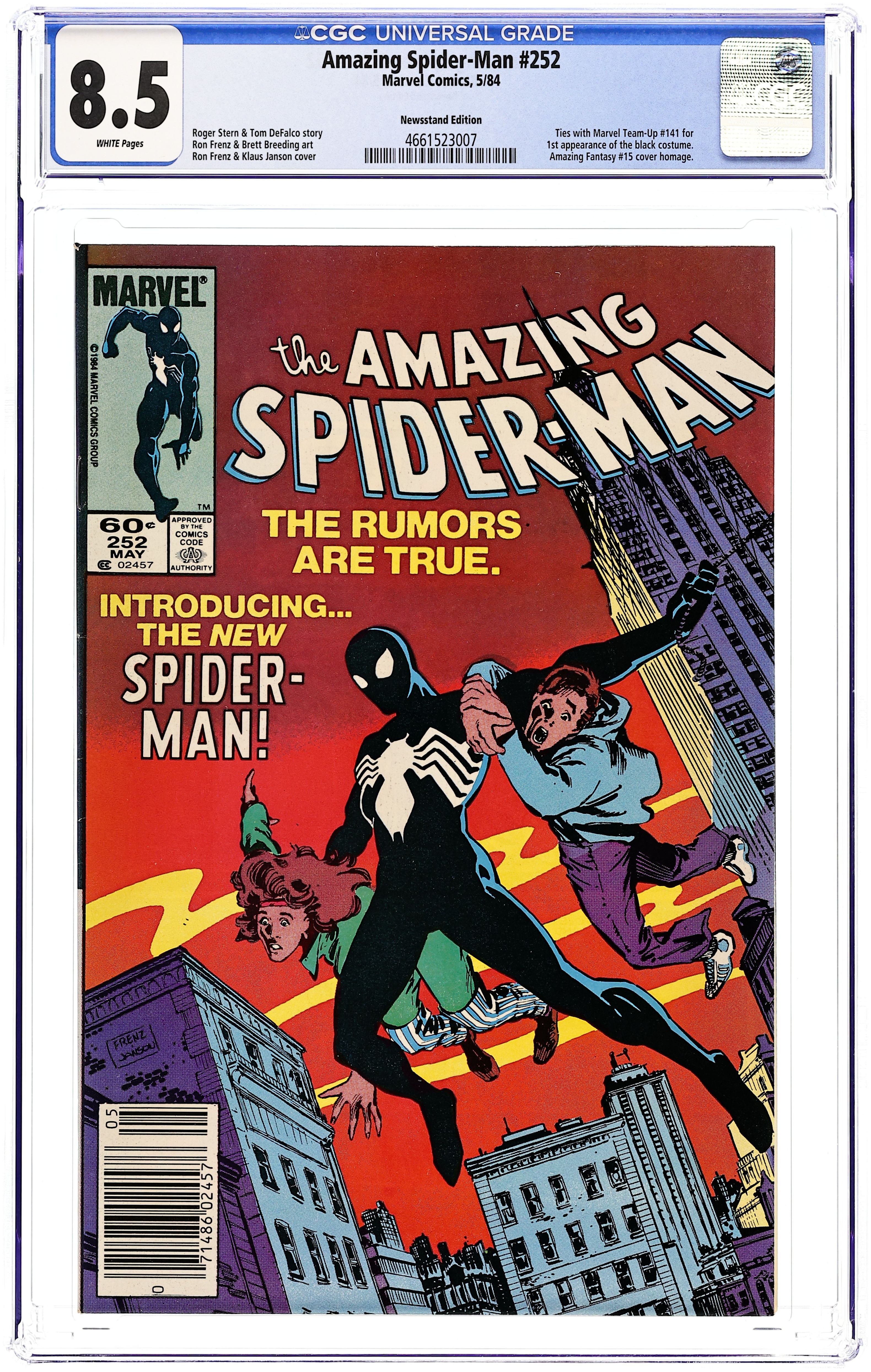 Tags: Chronological Appearances of Spider-Man's Black Costume (part 09 (1st Official Debut)), Marvel Legacy Numbering: Amazing Spider-Man (part 252), Secret Wars (1984) (part Aftermath 01), Spider-ManAmazing Spider-Man (1963 1st Series) 252N CGC 9.0 Newsstand Variant