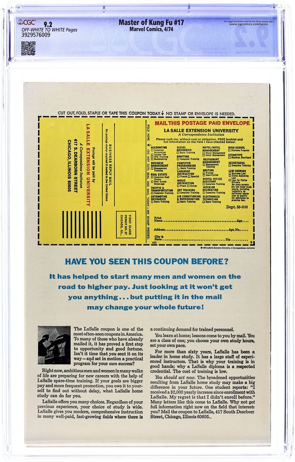 Tags: Marvel Legacy Numbering: Master of Kung Fu (part 17), Martial Arts$299.00- Paper: Off white to white