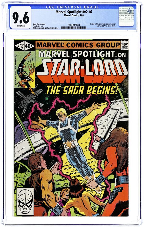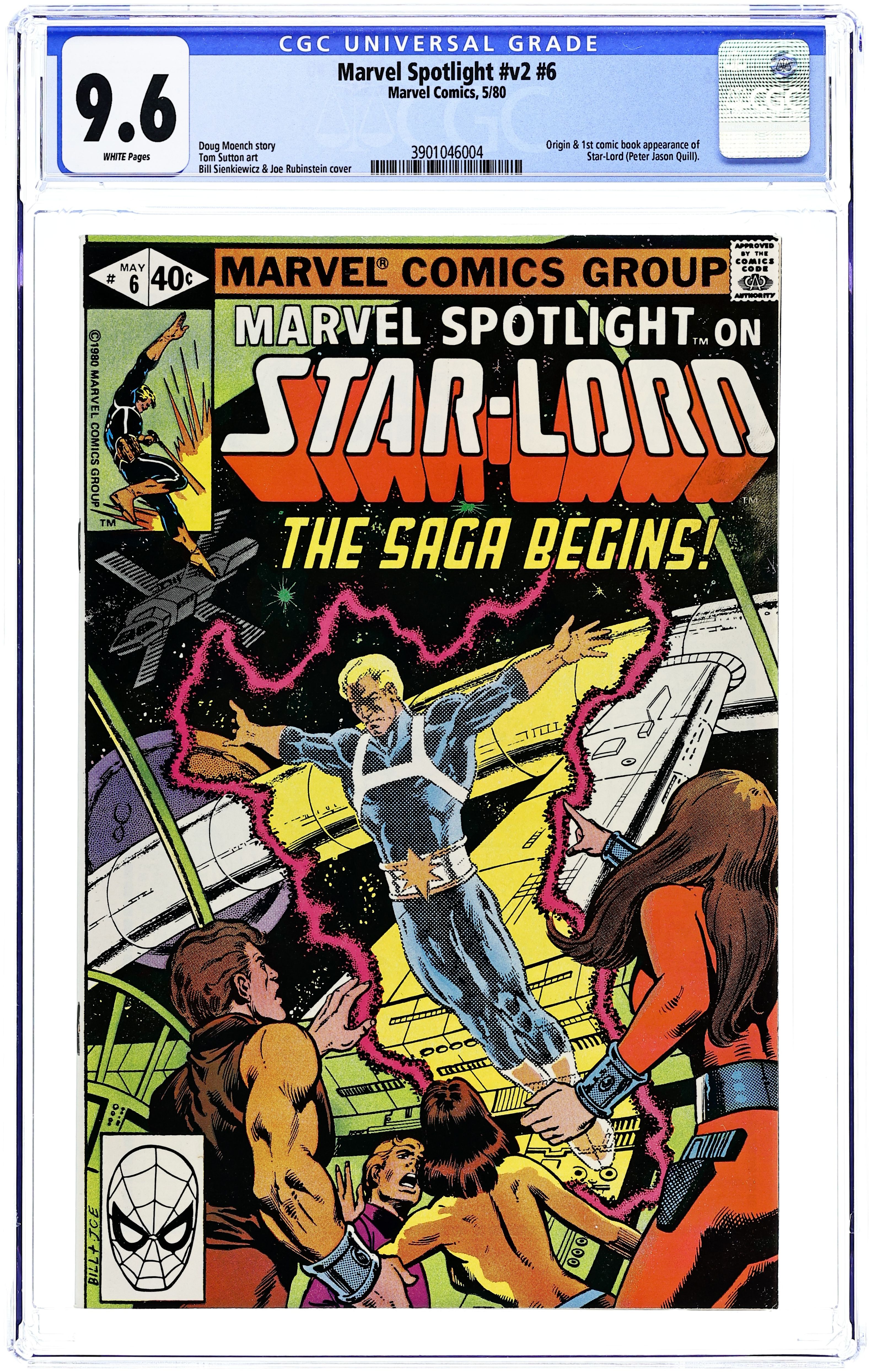 Marvel Spotlight on Star-Lord - "Tears For the World Called Heaven!" Written by Doug Moench. Art by Tom Sutton. Cover by Frank Miller and Bob Wiacek. Beyond the stars you'll find a world called Heaven - a world of no return! 32 pages, FC. NOTE: Last 40-cent cover price. Cover price $0.40.