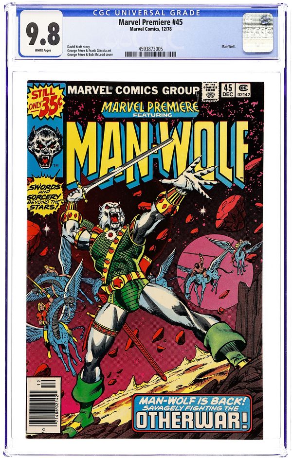 Man-Wolf stars in "Stargod!" Script by David Kraft, pencils by George Perez, inks by Ricardo Villamonte. Perez/Terry Austin cover. Cover price $0.35.