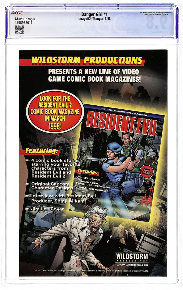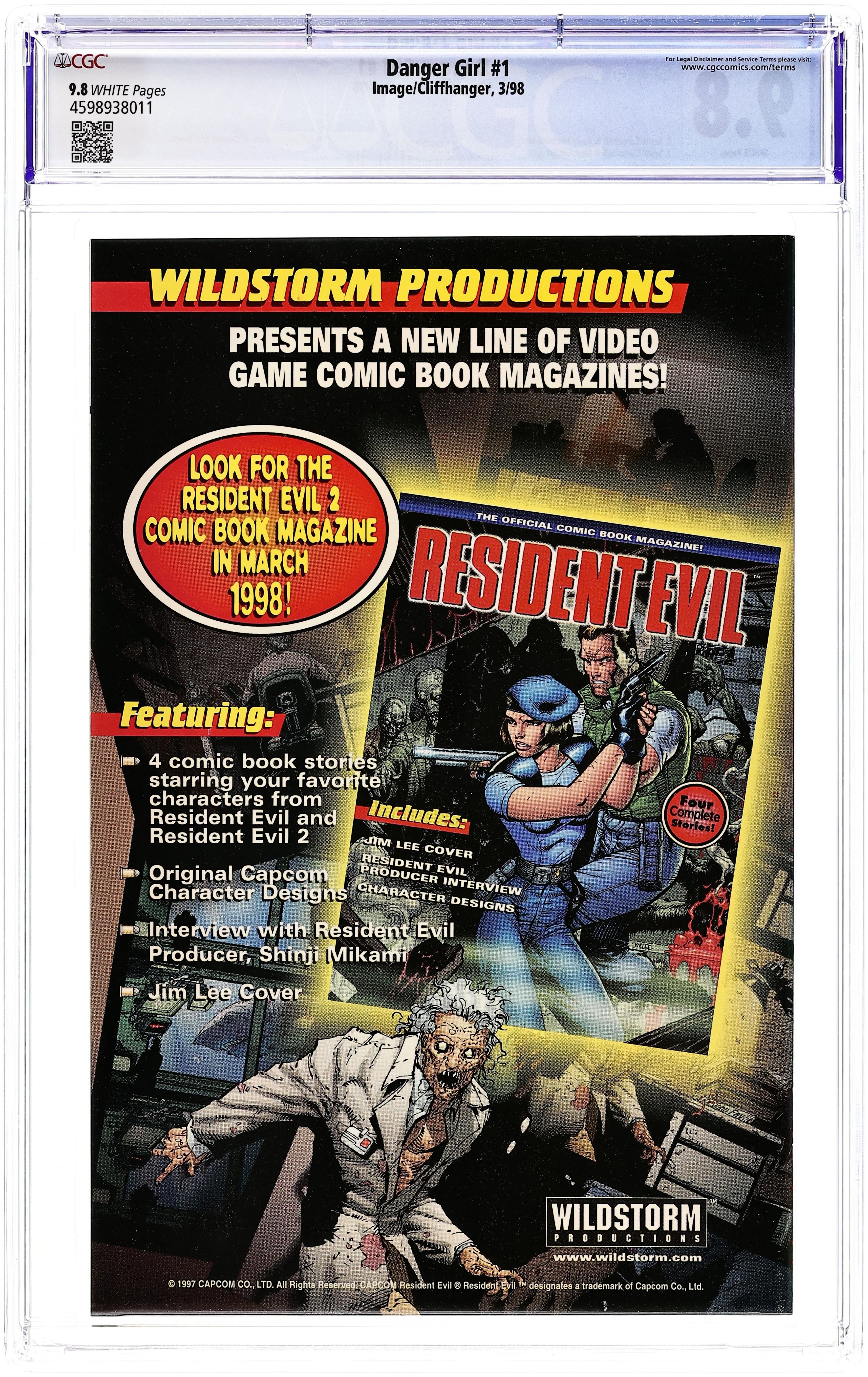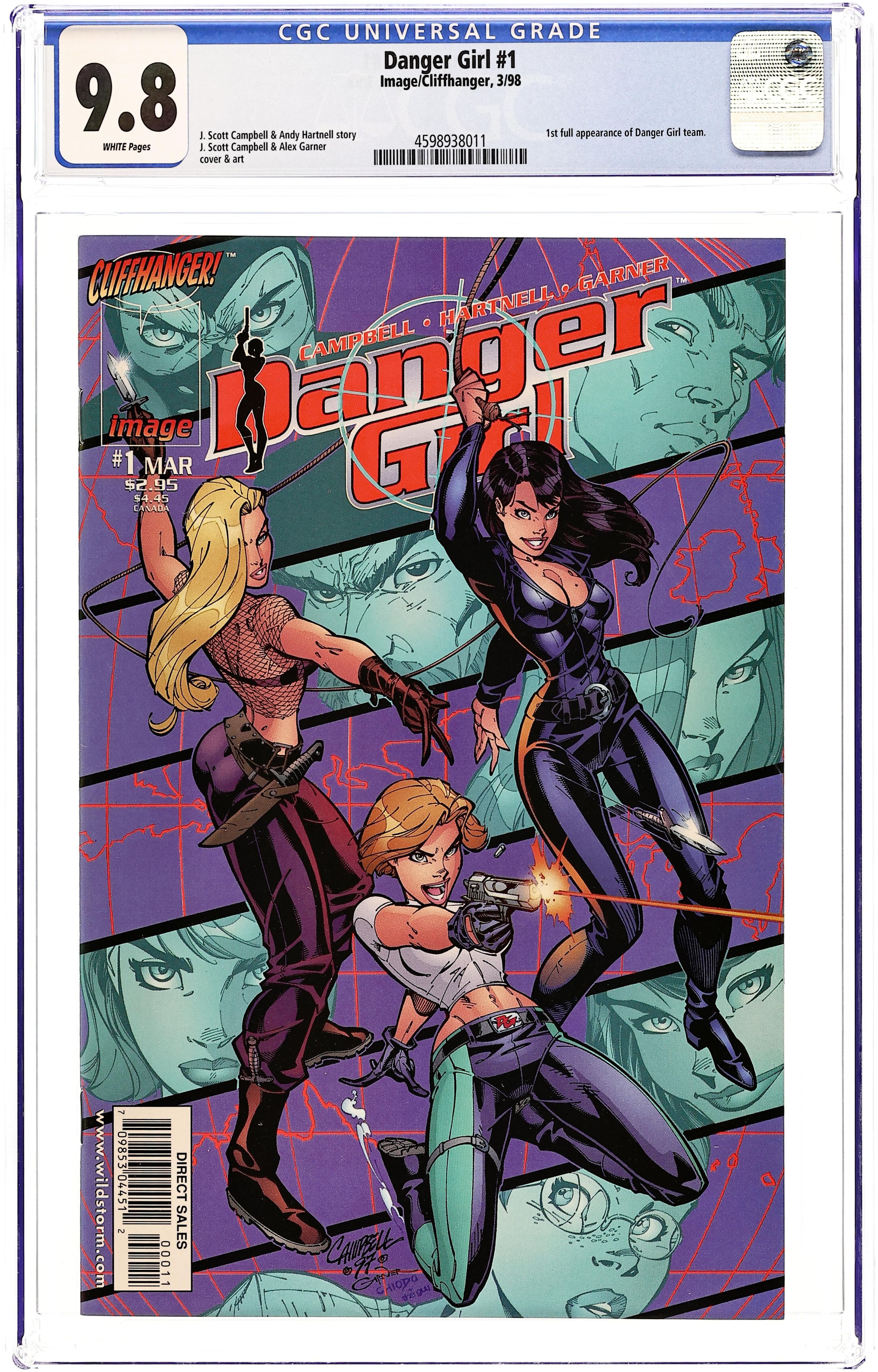 Cover pencils by J. Scott Campbell, inks by Alex Garner. "Dangerously Yours," script by J. Scott Campbell (plot) and Andy Hartnell (script), pencils by J. Scott Campbell, inks by Alex Garner; Abbey Chase chases after Donavin in a "borrowed" jeep; Danger Girls are right behind, hot on the trail of Abbey; Abbey stops Donavin and reclaims a priceless skull from him; Abbey joins Operation Danger Girl. March Releases & Danger Girl Tour 1998 ad. 44 pgs., full color. Cover price $2.95.