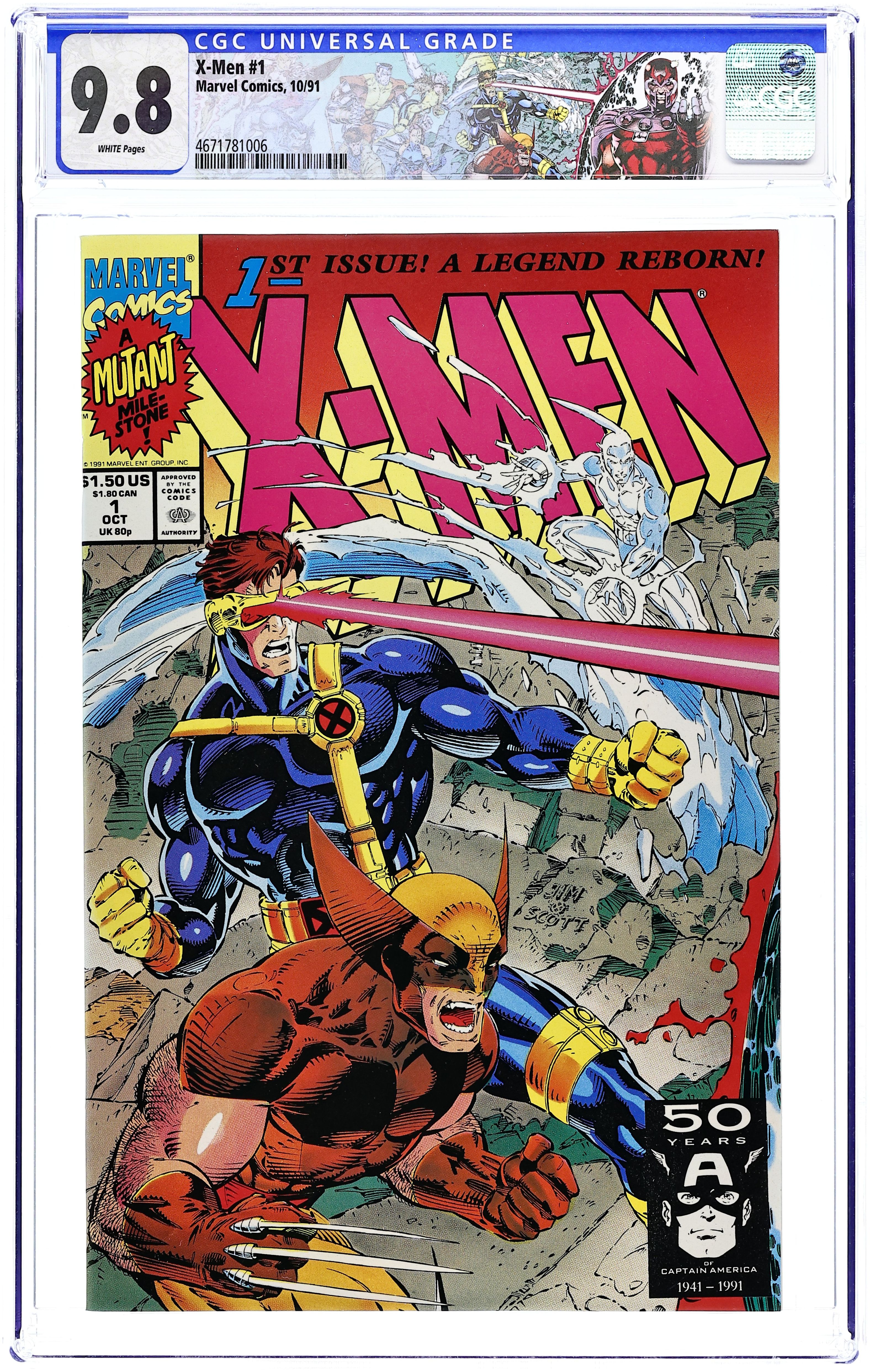 Newsstand Edition. Cyclops/Wolverine/Iceman cover. Cover pencils by Jim Lee, inks by Scott Williams. Rubicon, script by Jim Lee (Co-Plot) and Chris Claremont, pencils by Jim Lee, inks by Scott Williams; Magneto forms the Acolytes and proclaims Asteroid M a haven for mutants everywhere; But the rest of the world doesn't see it that way; Nick Fury cameo. 2-page pin-up: gallery of X-Men villains. X-Men Sketchbook by Jim Lee. Cover price $1.50. NOTE: Cover C connects to covers 1A, 1B, and 1D to form a single giant image. Cover price $1.50.