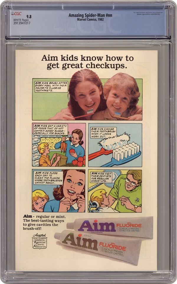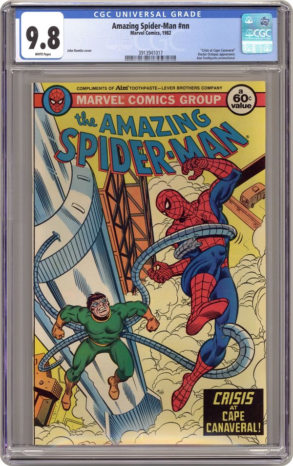 Spider-Man vs. Dr. Octopus. Promotional comic issued in 1982 by Aim Toothpaste. "Crisis at Cape Canaveral!". Cover price $0.60.