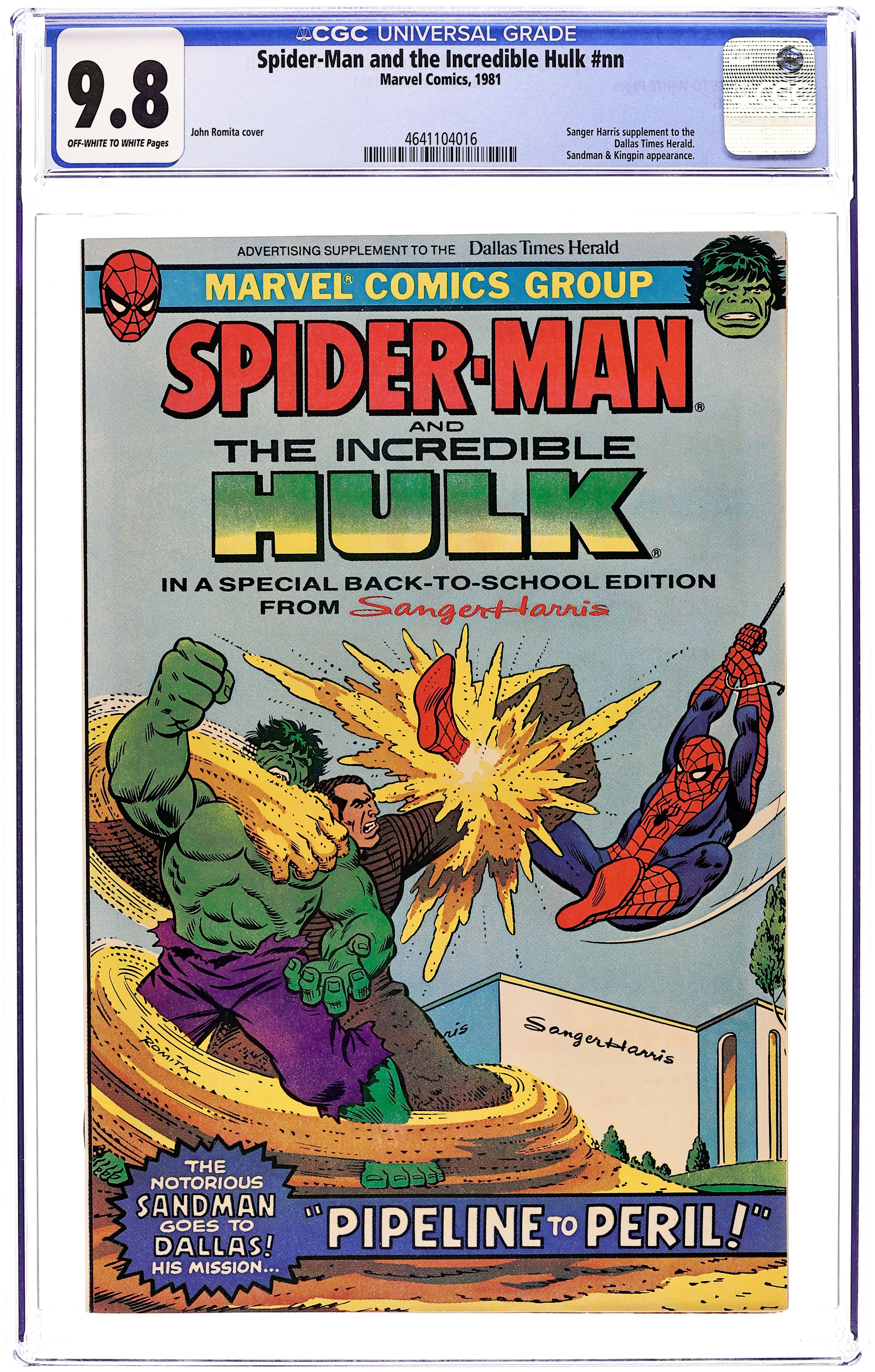 Exclusive Collector's Edition Promotional Comic presented by Acme and Dingo Children's Boots. Guest starring Spider-Woman. Cover by John Romita, Jr. "The Absorbing Man Breaks Loose!" written by David Anthony Kraft & Ed Hannigan, art by Alan Kupperberg & Al Milgrom. Cover price $0.40.