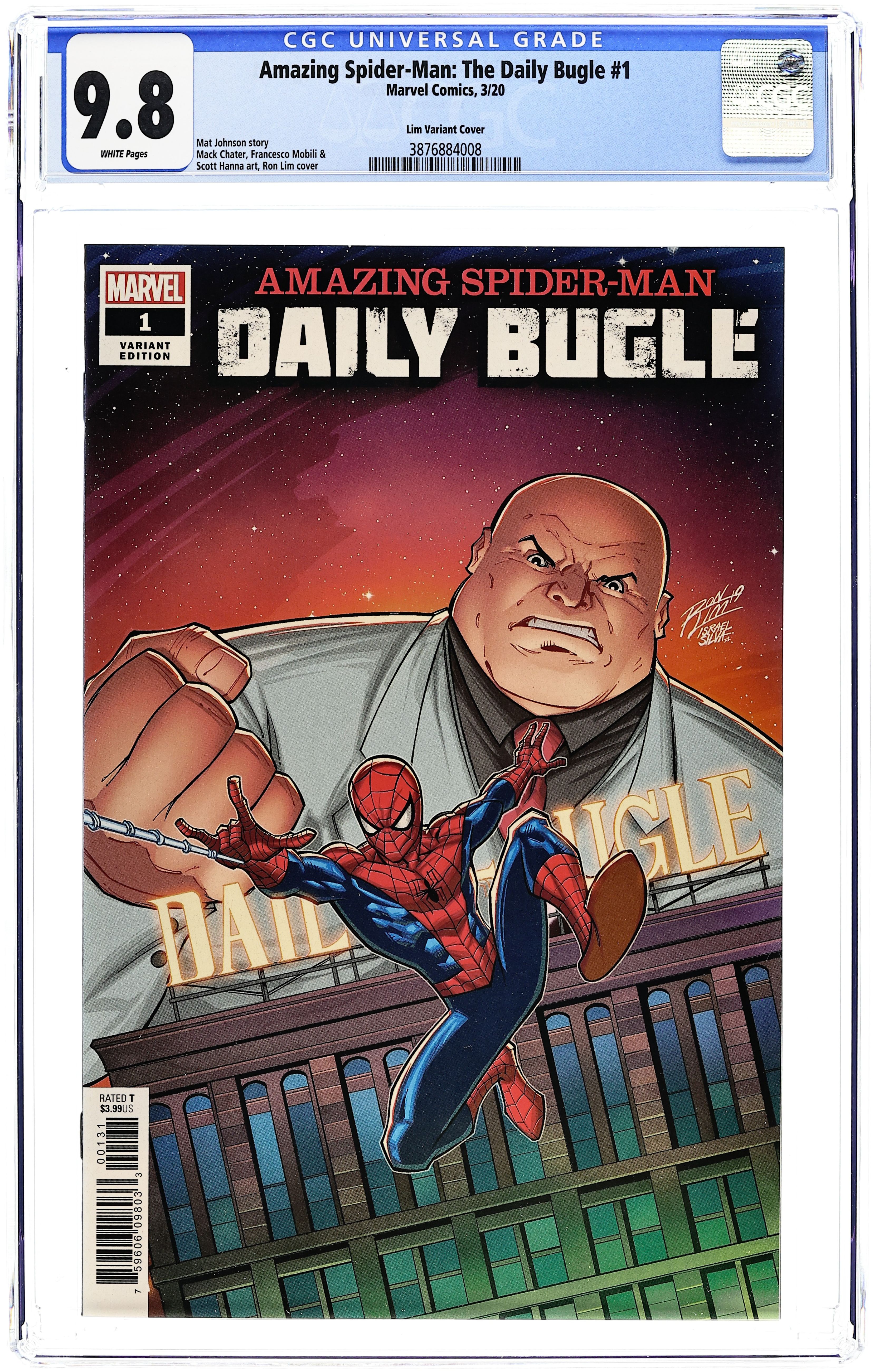 Limited 1 for 25 Retailer Incentive Variant Cover. Written by Mat Johnson. Art by Mack Chater. Cover by Ron Lim. SPINNING OUT OF AMAZING SPIDER-MAN! The journalist must speak truth to power - whether or not it's wielded responsibly. Helmed by Peter Parker's mentor, Robbie Robertson, the Daily Bugle staff is at last chasing stories that matter. And in a city under Mayor Wilson Fisk, keeping the public informed is as essential as it is dangerous. Weaving between events in AMAZING SPIDER-MAN and DAREDEVIL, Mat Johnson (Hellblazer Special: Papa Midnite, Incognegro, Loving Day) and Mack Chater (BLACK PANTHER AND THE CREW, Briggs Land) are following a lead into Kingpin and Spider-Man's past that will change the way you look at the webslinger now, and as his story continues. 28 pages, full color. Rated T Cover price $3.99.