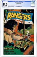 Cover by Joe Doolin. Edited by Jack Byrne. Stories and art by Bob Lubbers, John Celardo, Charles Sultan, Lily Renee, Maurice Whitman, and Howard Larsen. Tales of adventure from pioneering comics publisher Fiction House. Outlaws dress as ancient conquistadors to trick a Pueblo tribe into attacking a wagon train; A man scientist plans to use his youth-stealing machine on The Werewolf Hunter's niece Phyllis; Good-girl art galore as Glory Forbes discovers criminals fixing a basketball game. Best action-girl cover yet by Joe Doolin. Firehair; Ben Blueridge; Glory Forbes; Sky Rangers; Crusoe Island; Poor Pierre; Why?; The Werewolf Hunter; Tiger Man. 52 pages, Full Color. Cover price $0.10.
