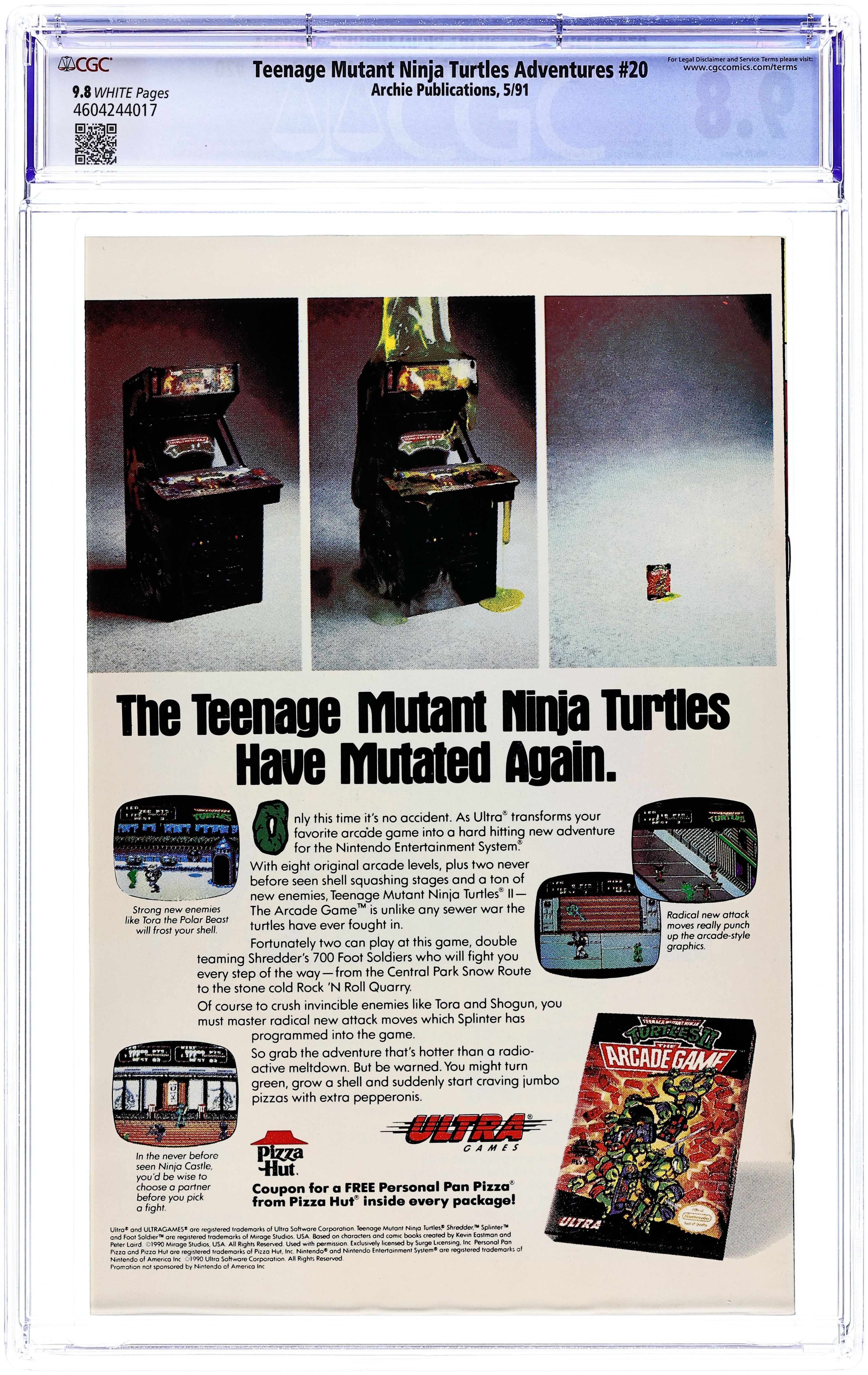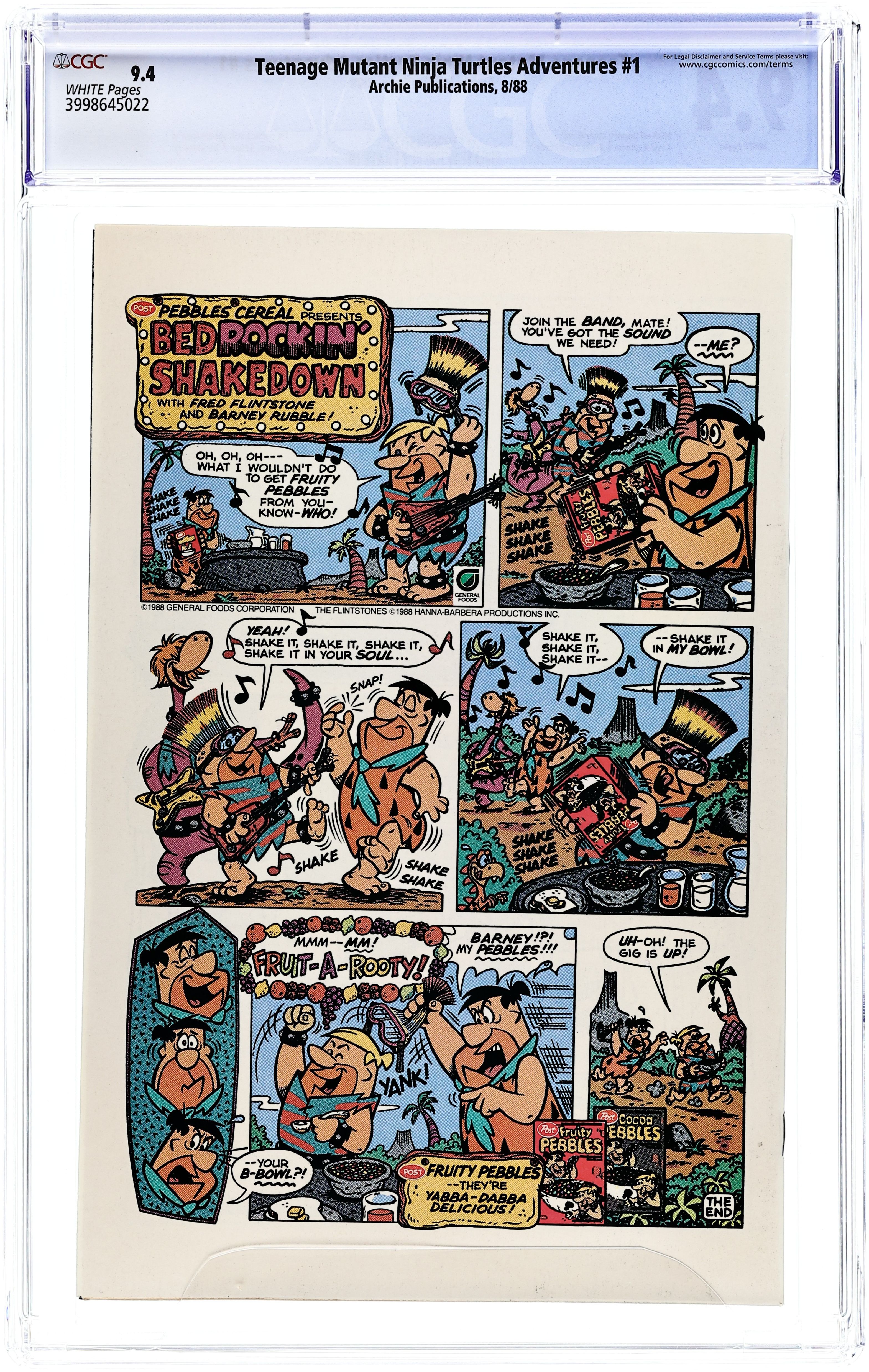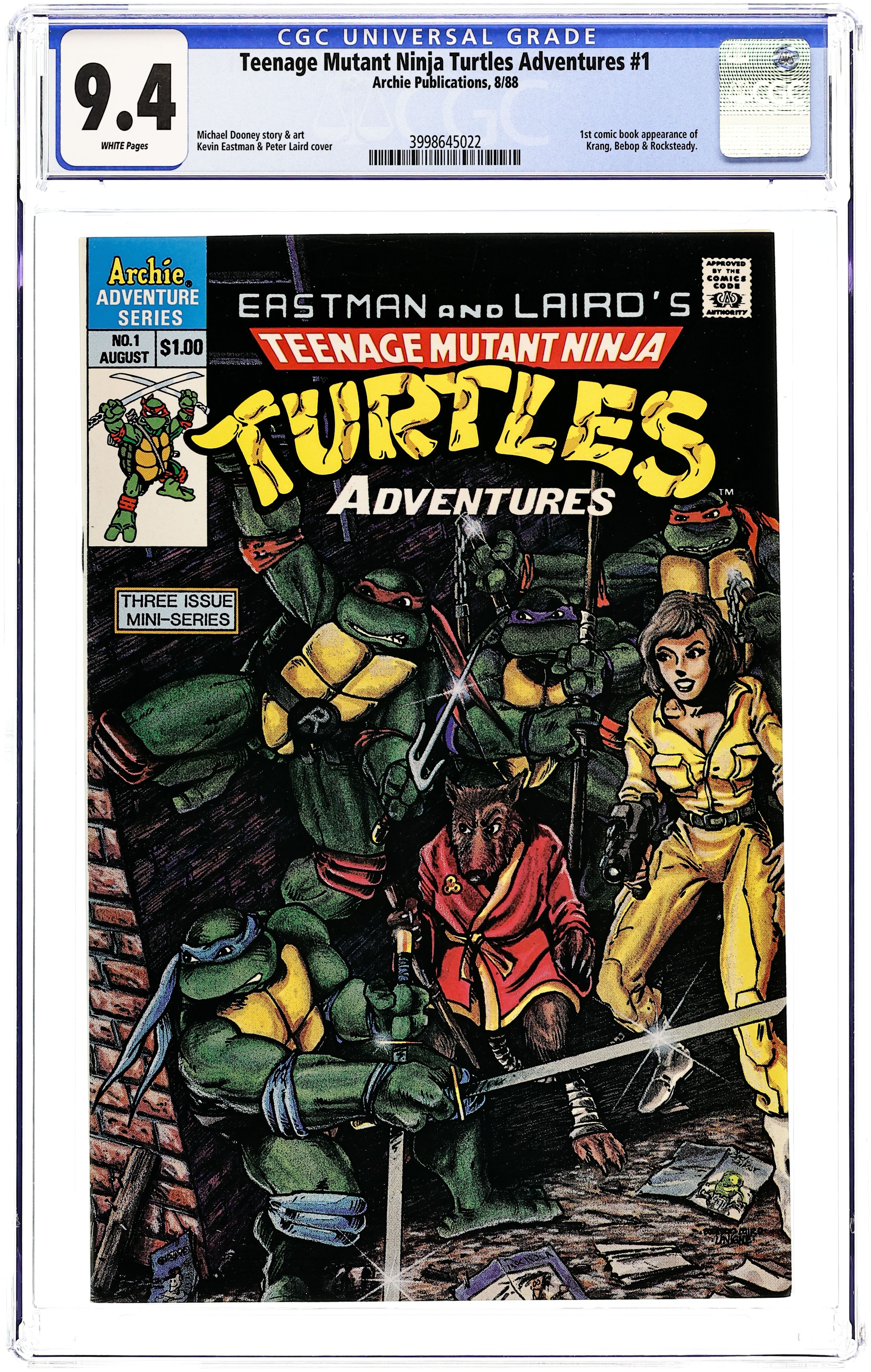 Published Aug 1988 by Archie Publications.Teenage Mutant Ninja Turtles Adventures (1988) 1 CGC 9.8 Direct Variant