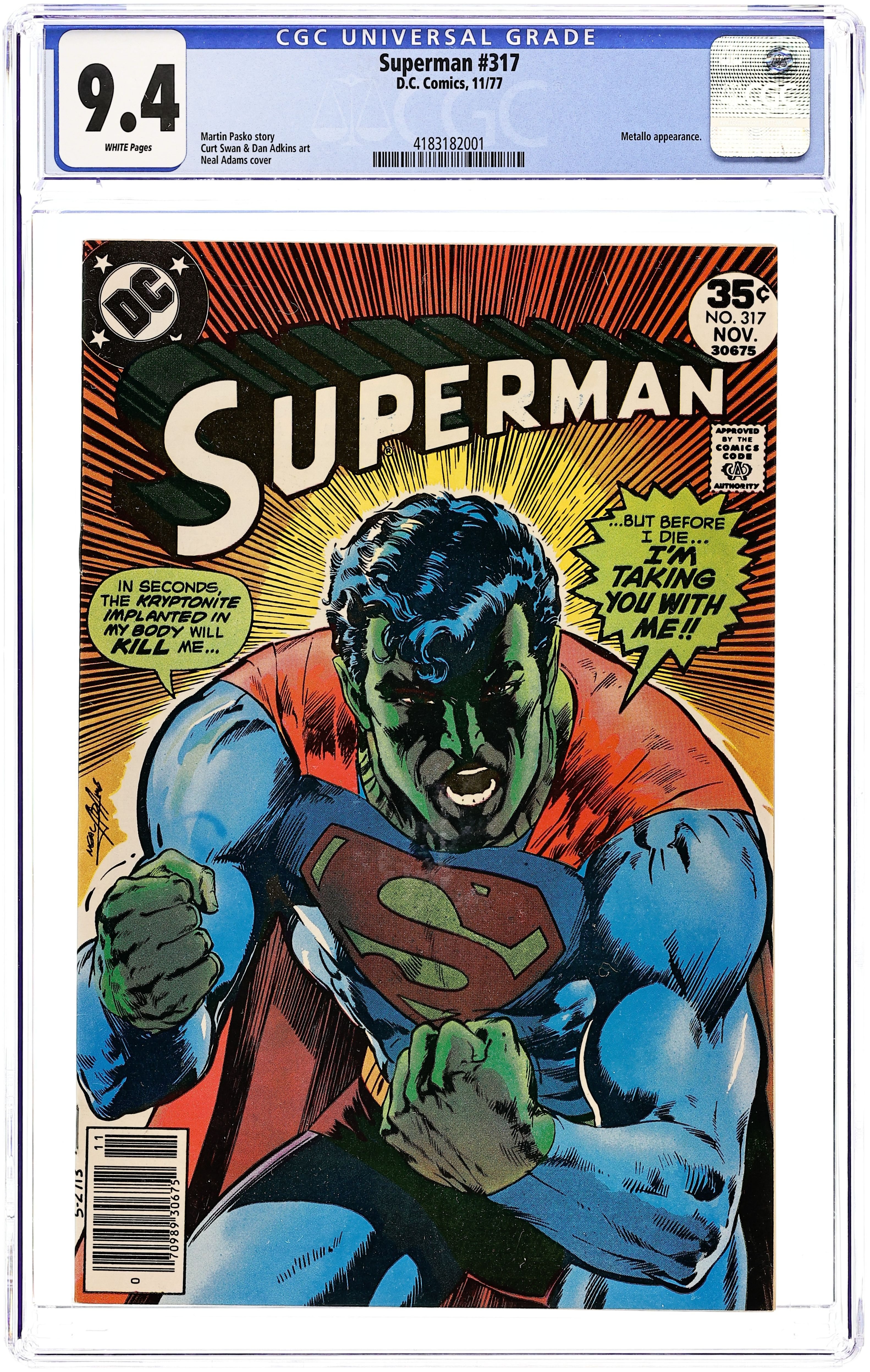Cover art by Neal Adams. The Killer With the Heart of Steel!, script by Martin Pasko, pencils by Curt Swan, inks by Dan Adkins; Superman defeats Metallo, and Clark's new co-anchor is revealed. 36 Pages, Full Color. Cover price $0.35.