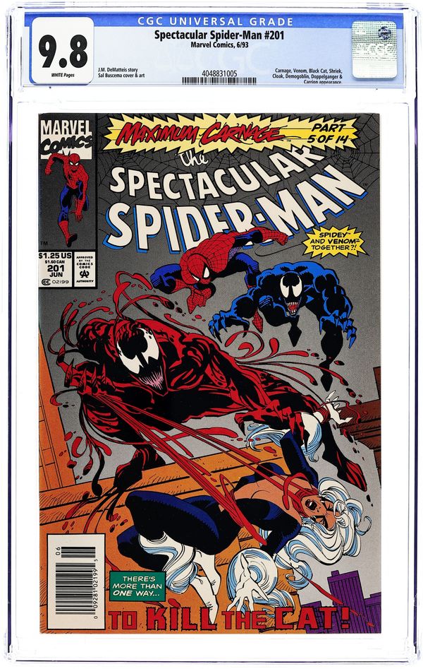 Tags: Marvel Legacy Numbering: Spectacular Spider-Man (part 201), Maximum Carnage (part 5), Carnage, Spider-Man, VenomSpectacular Spider-Man (1976 1st Series) 201 CGC 9.8