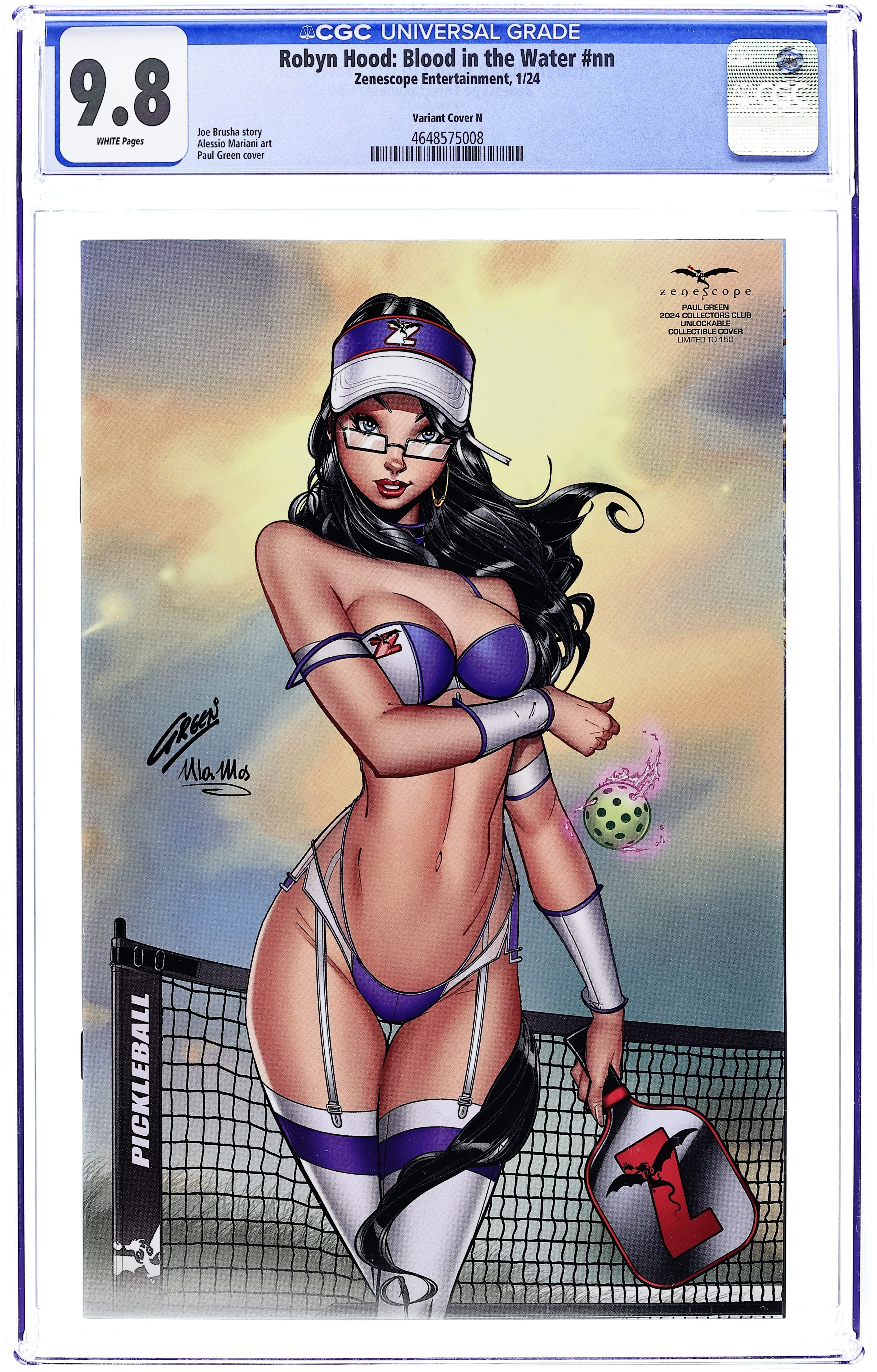 2024 Collectors Club Unlockable Collectible Lingerie Edition Variant Cover by Paul Green - limited to 150 copies. Written by Joe Brusha. On her way back from the badlands, Robyn makes a pit stop at Lake Michigan for a mini vacation. Her fun in the sun soon turns deadly serious when local boaters are attacked by a mysterious creature in the lake. Robyn sets out to stop the monster before it claims any more victims. 40 pages, full color. Rated T