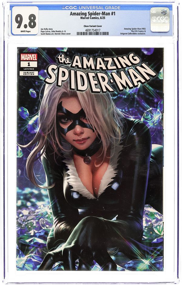 The 616 Comics and Artgerm Collectibles Exclusive Virgin Cover by Derrick Chew. Written by Joe Kelly. Art by Pepe Larraz; John Romita Jr. ALIVE & THWIPPING! The next era of AMAZING SPIDER-MAN has arrived! Peter is, shockingly, without a job and looking for gainful employment, but his job search is interrupted by a RAMPAGING RHINO who is but the tip of a sinister iceberg. What major Spider-Villain is working behind the scenes weaponizing other Spider-Villains including one we havent seen in OVER SEVEN YEARS?! Also, what is that Goblin-free Norman Osborn up to anyway? 40 pages, full color. Rated T