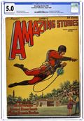 Amazing Stories volume 4 number 10 published in January 1930. Edited by Hugo Gernsback. Includes "Beyond the Green Prism" part I by A. Hyatt Verrill, "When the Atoms Failed" by John W. Campbell, "The First Ornithopter" by Jack Winks, and "Fourth-Dimensional Space Penetrator" by Julian Kendig, Jr., among others. Illustrations by Morey and Wesso. 8-in. x 11-in.; black and white. Cover price $0.25.