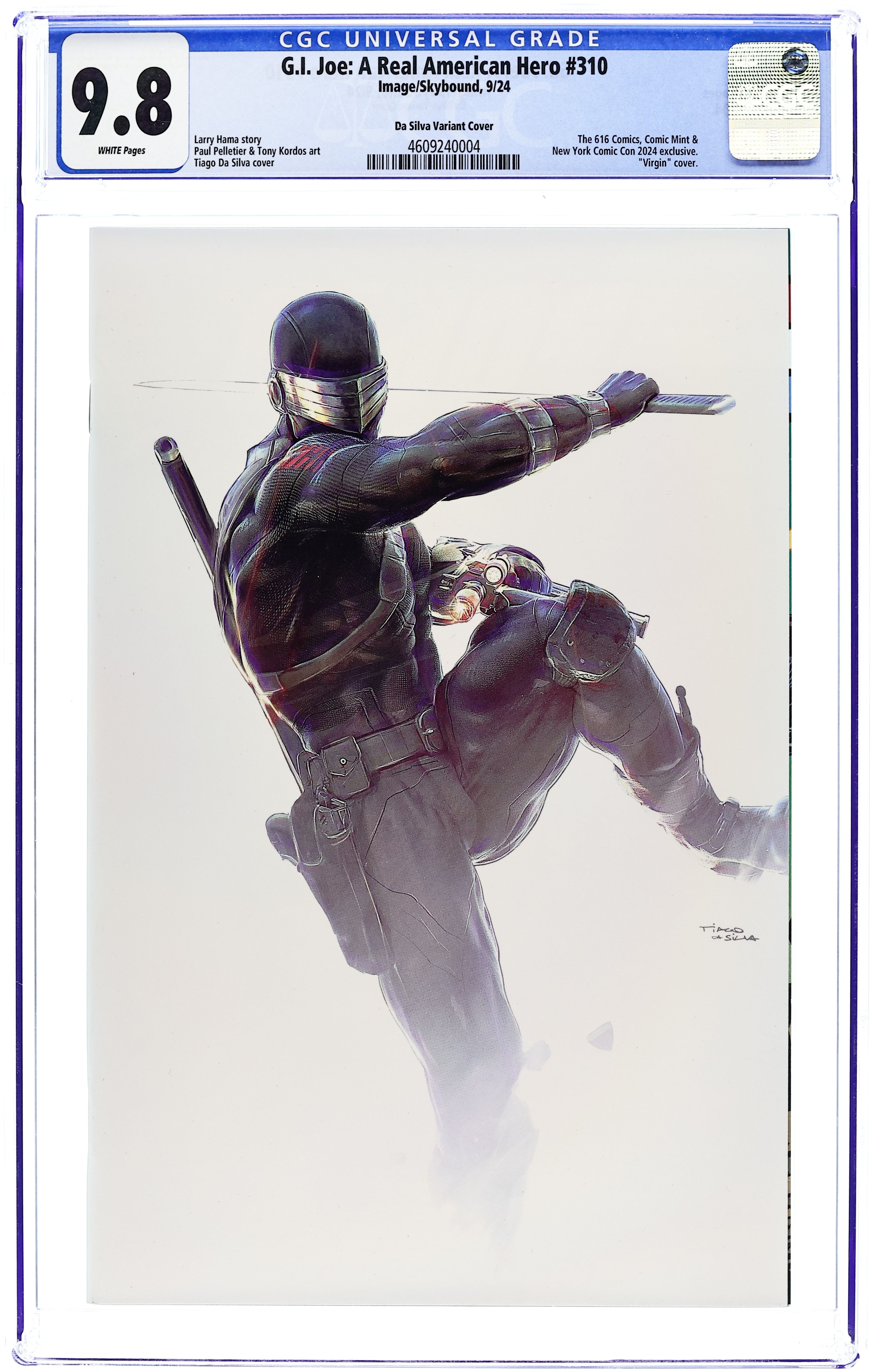 The 616 Comics and Comic Mint New York Comic Con Exclusive Virgin Cover by Tiago Da Silva. Written by Larry Hama. Art by Paul Pelletier & Tony Kordos. THE BATTLE FOR SPRINGFIELD! Cobra Commander has a plan. And that means no one is safe, as the conflict between the Joes and Cobra escalates! 28 pages full color. Rated T