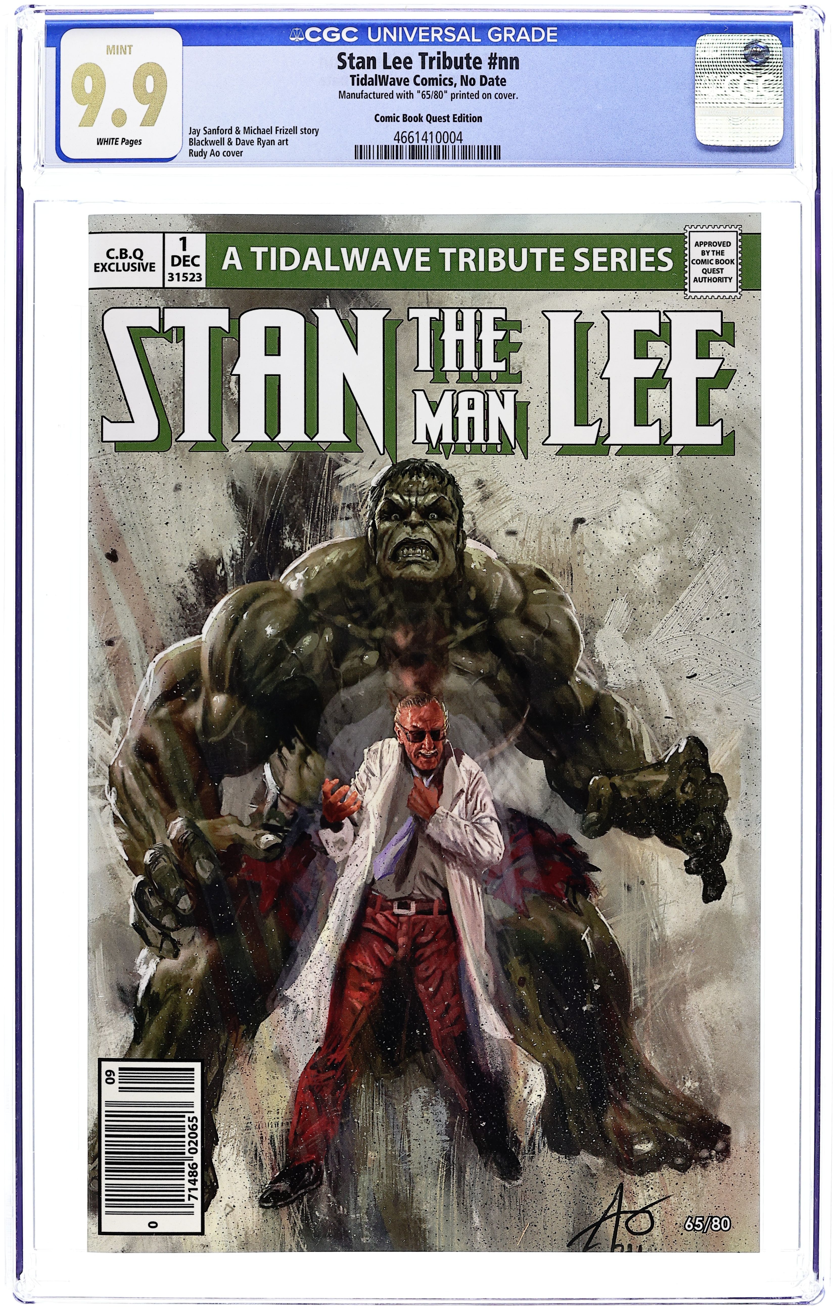 Comic Book Quest Exclusive "Hulk" Edition Variant Cover by Rudy Ao. Story by Jay Sanford and Michael Frizell. Art by Blackwell and Dave Ryan. Comic book tribute to Stan Lee.