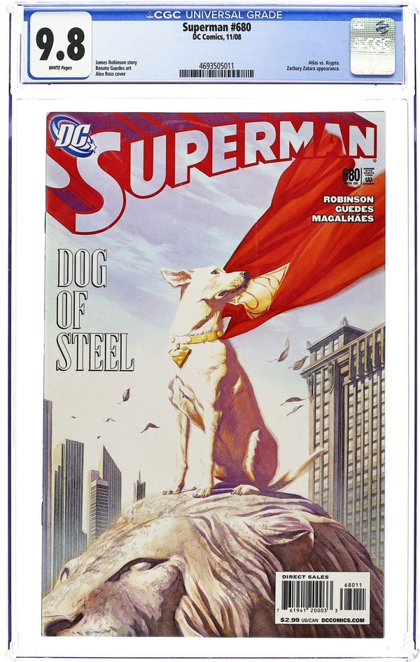 Ends Apr 17 9:53 PM CST Bid History 3 bids Current Bid $16 Your Secret Max Bid If you'd like to bid, please log in or register. CGC Convention Exclusive Variant Cover by Dan Mora. Reprints material from Superman (1987 2nd Series) #680. Written by James Robinson. Art by Renato Guedes & José Wilson Magalháes. Cover by Alex Ross. "Atlas, Part 4!" - The grand finale of the Atlas epic finds Superman's foe seemingly victorious! With Superman down for the count, who can stand in the way of the city's supposed new ruler? Enter Krypto, (Super)man's best friend, who will do anything to protect his master. Don't miss Krypto at his most heroic, a worthy addition to the Superman Family - and a very good boy. Plus: A new, magical character settles in Metropolis, just when Superman needs him most.