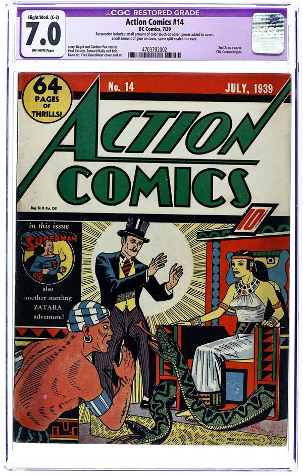 Cover art by Fred Guardineer. Superman story, script by Jerry Siegel, art by Paul Cassidy (signed as Joe Shuster). Pep Morgan story, script by Gardner F. Fox, art by Fred Guardineer (as Gene Baxter). Adventures of Marco Polo story, art by Sven Elven. Clip Carson story, script Bill Finger, art by Bob Kane. Tex Thomson story, art by Bernard Baily. Chuck Dawson story, art by Homer Fleming. Zatara Master Magician story, script by Gardner F. Fox, art by Fred Guardineer. 68 Pages, Full Color. $.10 Cover price $0.10.