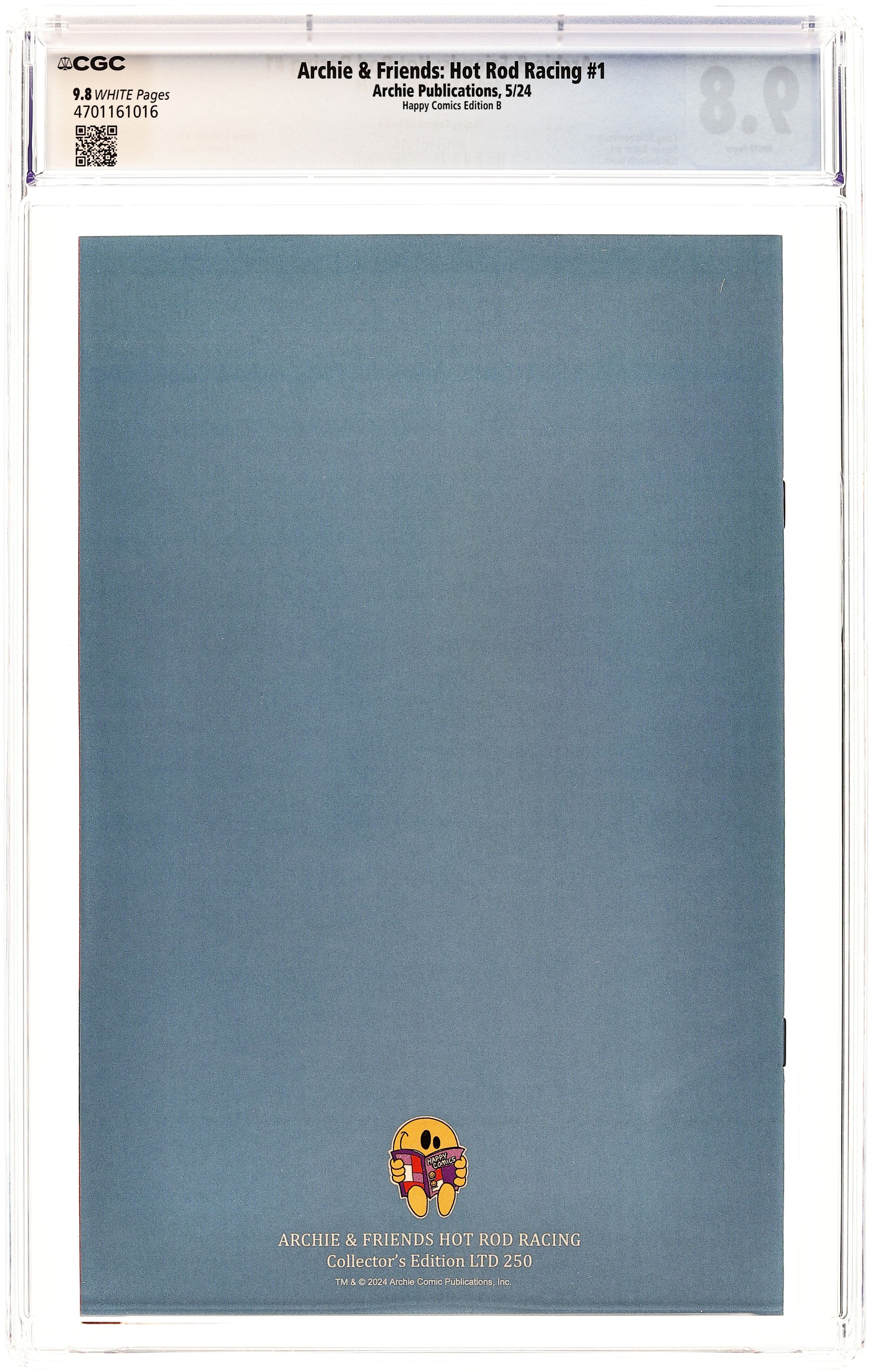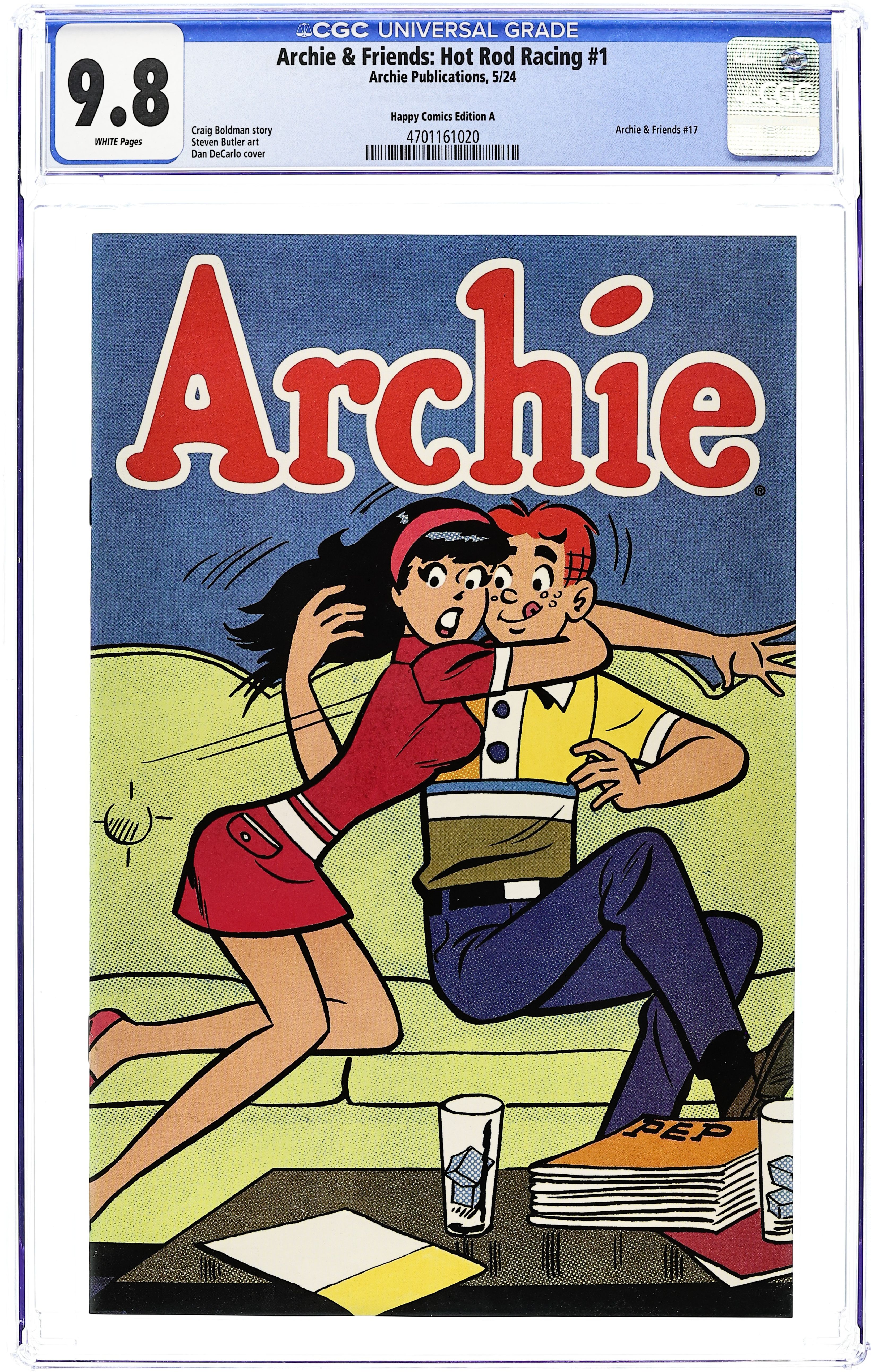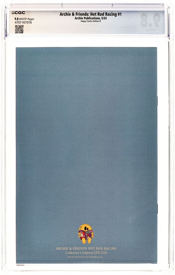 Happy Comics Edition Variant Cover by Dan DeCarlo - limited to 250 copies. Written by Craig Boldman and Various. Art by Stephen Butler and VARIOUS. A BRAND-NEW STORY kicks off this NEED FOR SPEED issue! In 'The Race to Save Face,' First Appearance of Daisy Thunder, of the Southside Serpents, challenges Archie and his crew to a charity race throughout the Riverdale. Can Archie prove that his souped up jalopy can best Daisy's hot wheels? All that plus more racing fun! 32 pages, full color.