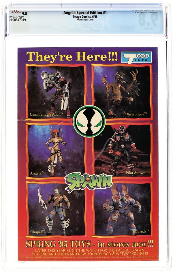 Direct Edition. Cover art by Greg Capullo. Untitled Angela story, script by Neil Gaiman, art by Greg Capullo; Angela is charged with Treason for failing to kill Spawn. Angela pinup, art by Sean Parsons and Brad Gorby. 36 pgs. $2.25. Cover price $2.25.