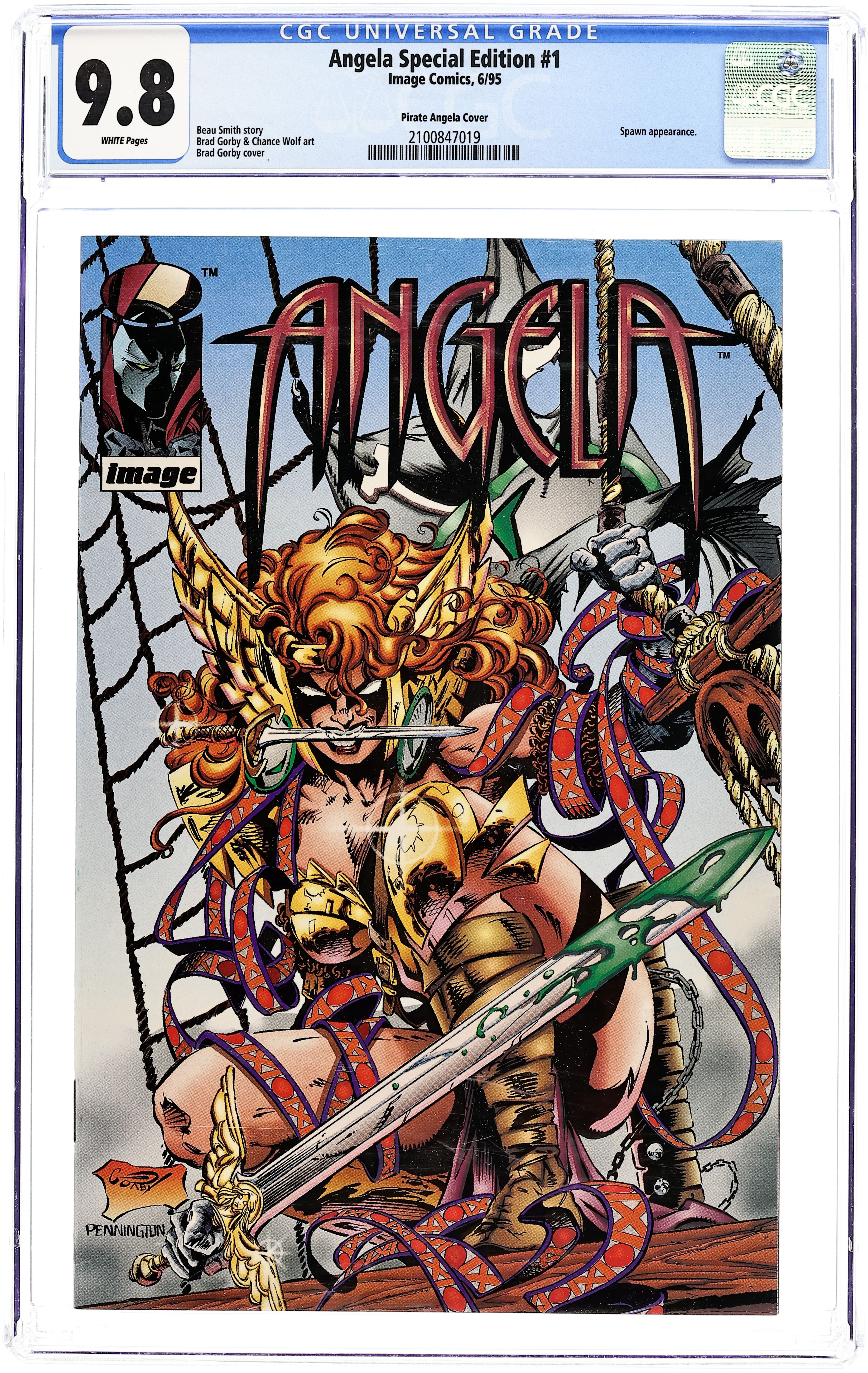 Direct Edition. Cover art by Greg Capullo. Untitled Angela story, script by Neil Gaiman, pencils by Greg Capullo, inks by Mark Pennington; Angela is cleared of all charges, but leaves Heaven anyway. Angela pinup by Betty Ballew. Angela pinup by Gary Kwandis. 36 pgs. $2.25. Cover price $2.25.