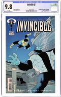 Written by ROBERT KIRKMAN Art by RYAN OTTLEY Cover by CORY WALKER & BILL CRABTREE FC 32 pgs. $2.95 Monthly ongoing series On sale 18 AUGUST, 2004 CONCEPT: Mark Grayson is just like everyone else his age, except that his father is the most powerful superhero on the planet. And now he's begun to inherit his father's powers. It all sounds okay at first, but how do you follow in your father's footsteps when you know you will never live up to his standards? THIS ISSUE: EISNER AWARD NOMINEE FOR BEST NEW TITLE! The Immortal is back. Seemingly dead at the end of issue 7, he was brought back to life by The Maulers and has now decided to reclaim his status as leader of The Guardians of the Globe. This does not bode well for the current leader, Robot. And just how does all of this involve Invincible? Cover price $2.95.