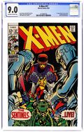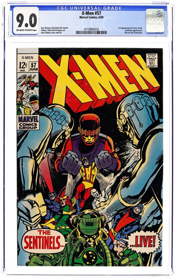 Cover pencils by Neal Adams. Mission: Murder!, script by Roy Thomas, pencils by Neal Adams, inks by Tom Palmer; Sentinels attack Beast and Iceman and Bobby sacrifices himself so that Hank can escape; Angel flies back to the states with Cyclops and Jean following close behind; Iceman is taken to Trask's Sentinel base where he meets up with Lorna and Alex, now called Havok with a containment suit built by Trask; Sentinels gather mutants from around the world and bring them to Trask; Fearful of Larry's methods, Chalmers takes the medallion from around his neck and the Sentinels refuse to follow their master as he is revealed to be a mutant. 36 pages, full color. Cover price $0.15.