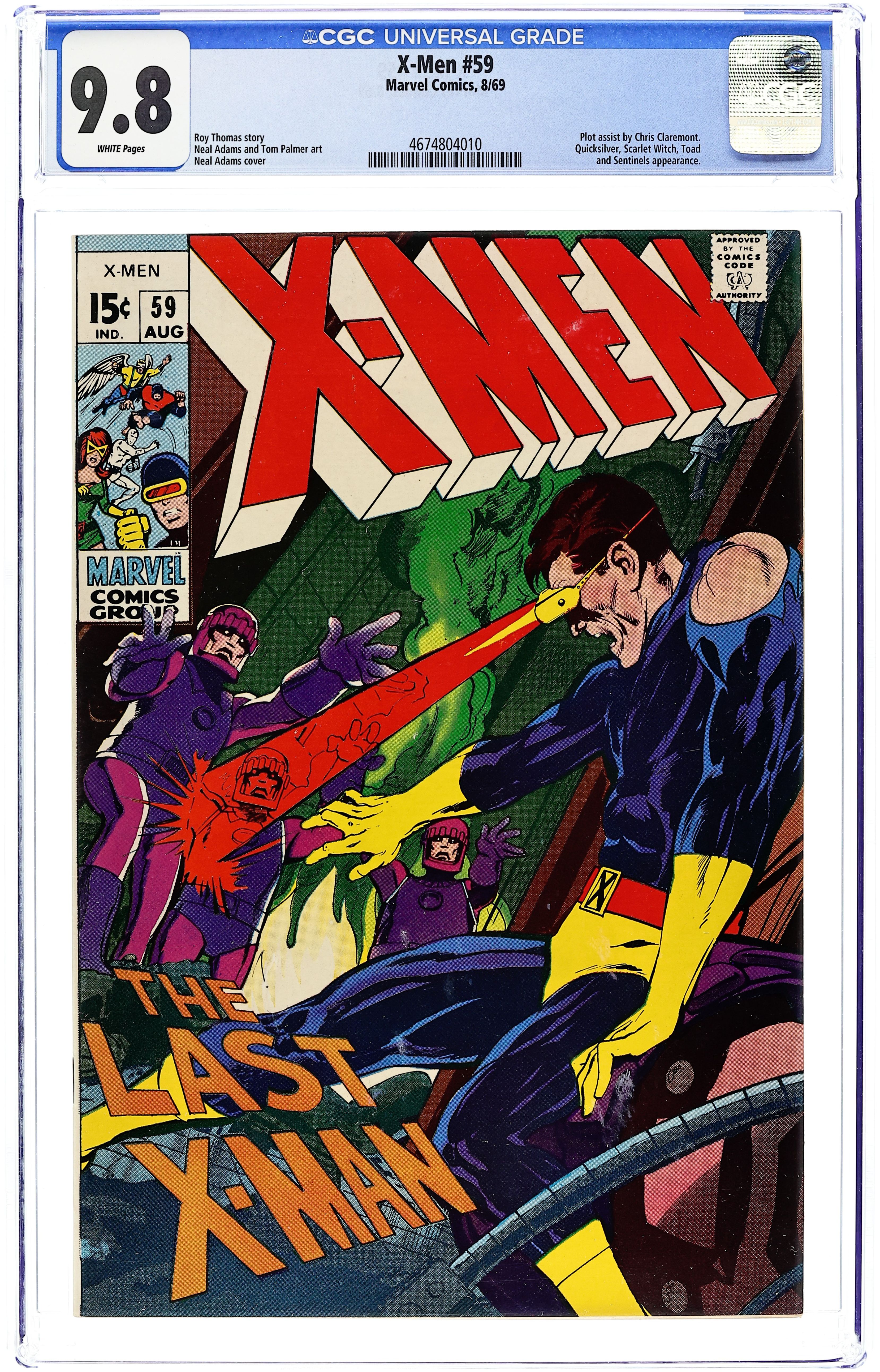 Cover pencils by Neal Adams. Do Or Die, Baby!, script by Chris Claremont and Roy Thomas, pencils by Neal Adams, inks by Tom Palmer, colors by Neal Adams; With Larry Trask revealed to be a mutant, the Sentinels refuse to obey him any more as they continue to capture mutants and prepare to kill them; Cyclops, Jean and Beast mount an offensive to rescue their captured friends; Cyke, Jean and Hank disguise themselves as Quicksilver, Scarlet Witch and Toad as they battle the Sentinels; Cyclops tricks the Sentinels into flying into the sun; They rescue Havok but he is injured. 36 pages, full color. Cover price $0.15.