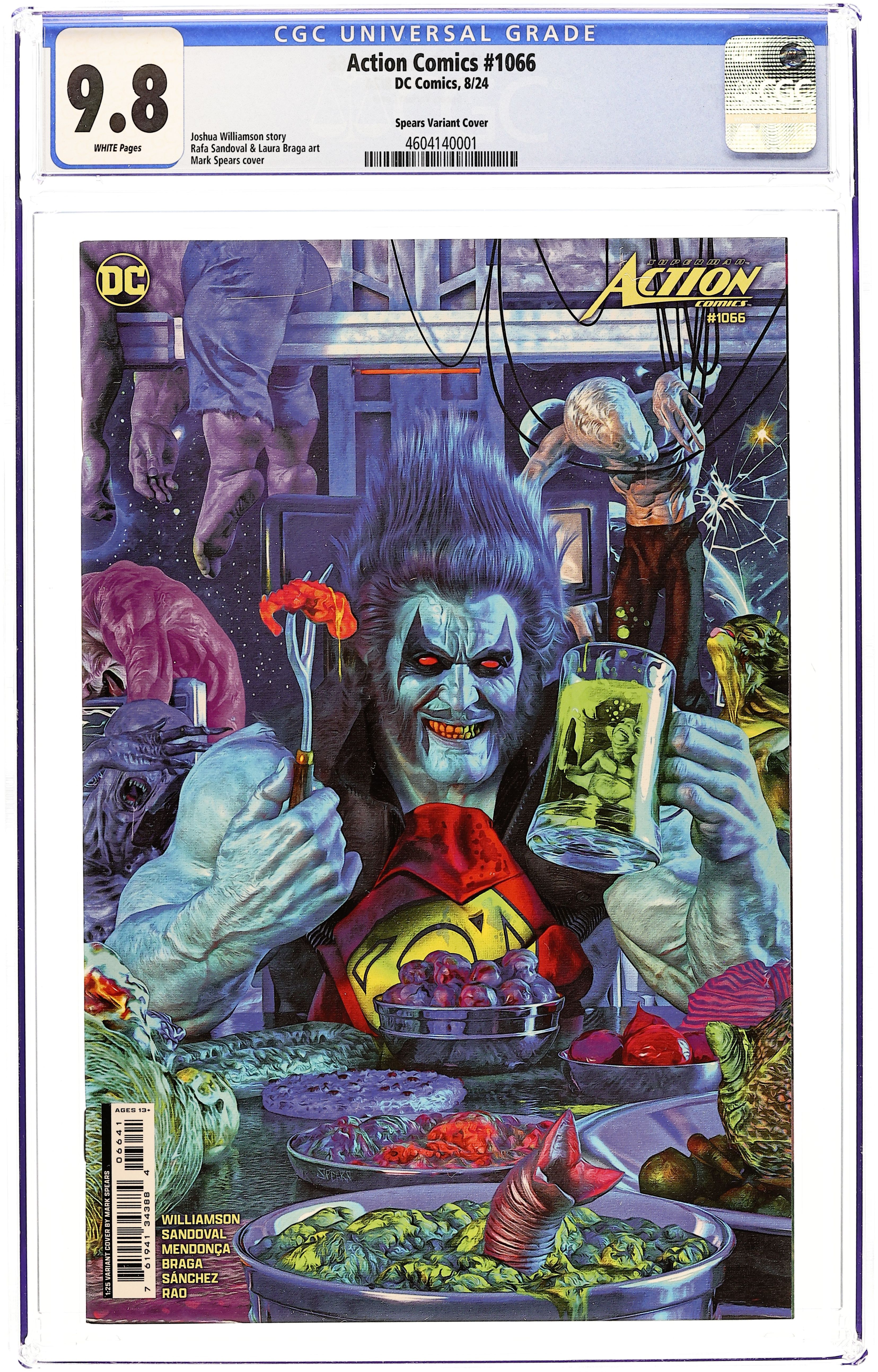 Limited 1 for 25 Retailer Incentive Variant Cover. Written by Joshua Williamson. Art by Rafa Sandoval, Laura Braga. Cover by Mark Spears. HOUSE OF BRAINIAC PART FIVE THE BRAINIAC QUEEN IS ALIVE! Now that Brainiac has created his masterpiece, all bets are off, and Superman and his family are witness to a cosmic horror unlike anything they've ever seen. As we learn the true history of Brainiac, the main man, Lobo, must choose what side he is on before all hell breaks loose! 40 pages, full color. Rated T+ Cover price $5.99.