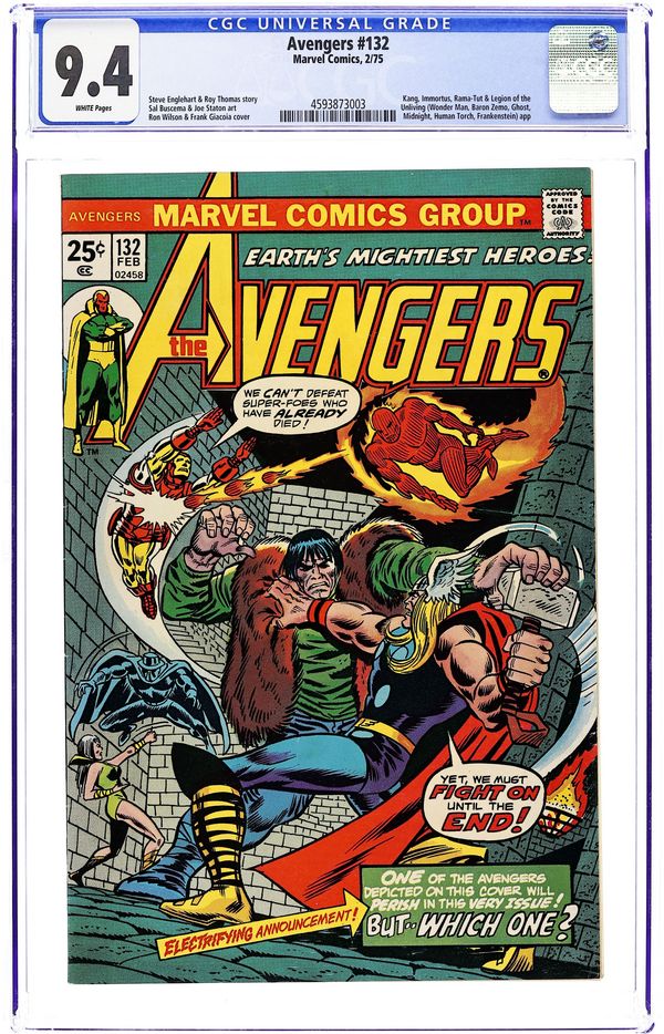 Tags: Marvel Legacy Numbering: Avengers (part 142), AvengersAvengers (1963 1st Series) 142 CGC 9.4