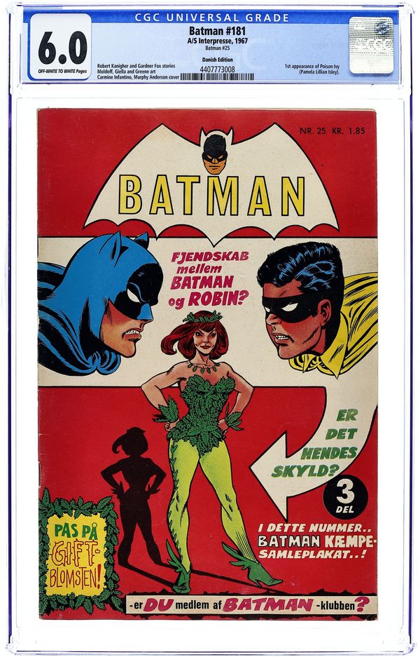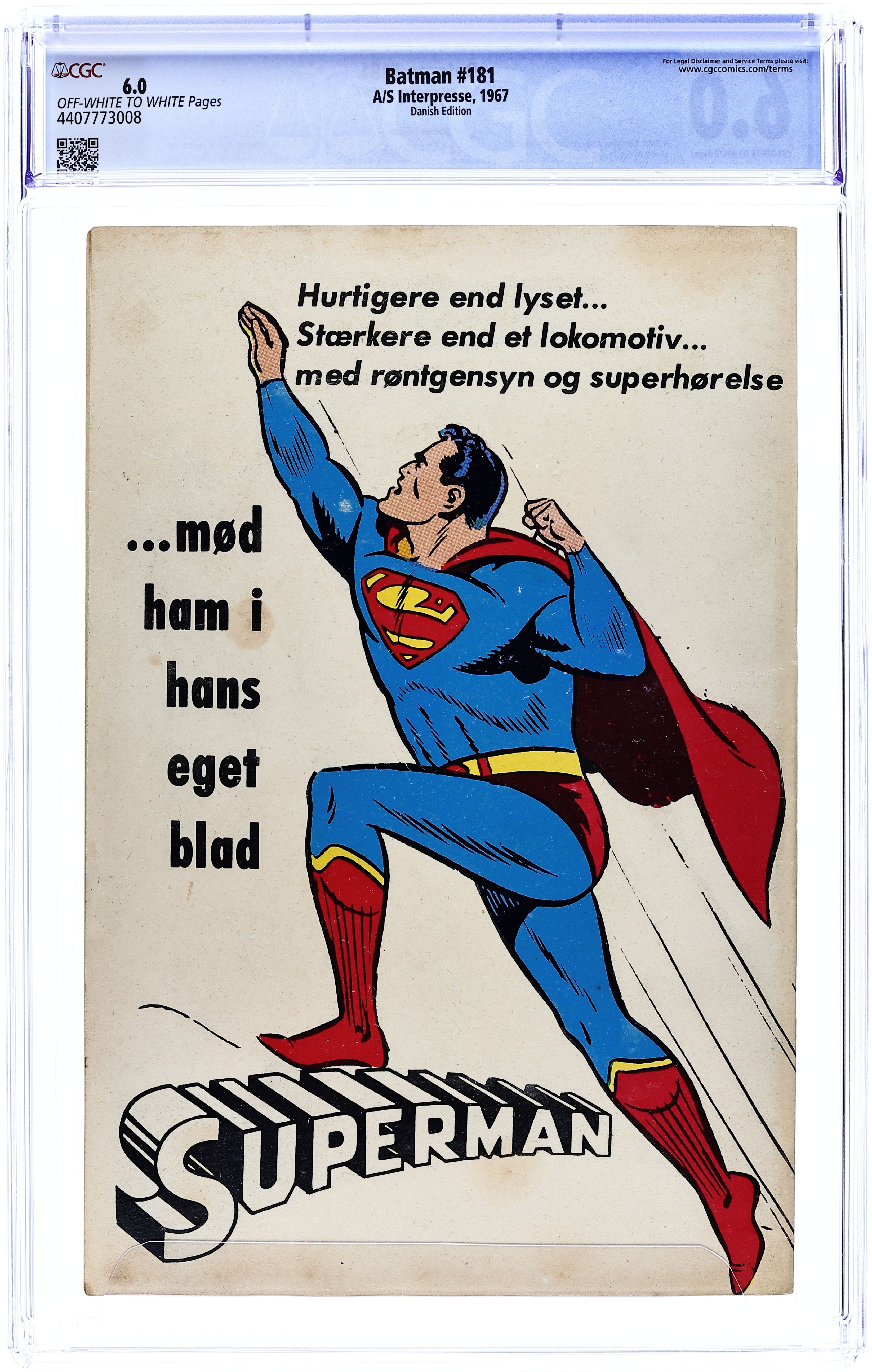 Danish Reprint Series. Reprints Cover and material from Batman (1940) #181. Stories by Robert Kanigher and Gardner Fox. Art by Sheldon Moldoff, Joe Giella, and Sid Greene. Cover by Carmine Infantino and Murphy Anderson. 6 3/4" X 10". Danish Language.