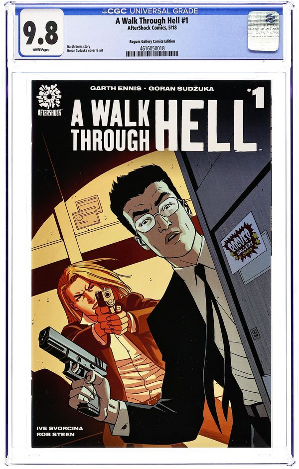 Rogues Gallery Comics variant. Written by Garth Ennis. Art and cover by Goran Sudzuka. So these two FBI agents walk into a warehouse… Special Agents Shaw and McGregor handle the routine cases nowadays, which is just the way Shaw likes it. She's pushing 40, a borderline burnout, the ghastly memories of her last investigation still clinging like shadows. McGregor is younger, more dedicated, hanging onto some measure of idealism whatever the world might throw at him. When two fellow agents go missing inside a Long Beach warehouse, Shaw and McGregor are sent to investigate. But what they find waiting is far from routine, as the local police have already discovered to their cost. Before the night is out, our heroes will encounter terror beyond their most appalling nightmares-in a place where the night may never end at all. 32 pages, full color. Cover price $3.99.