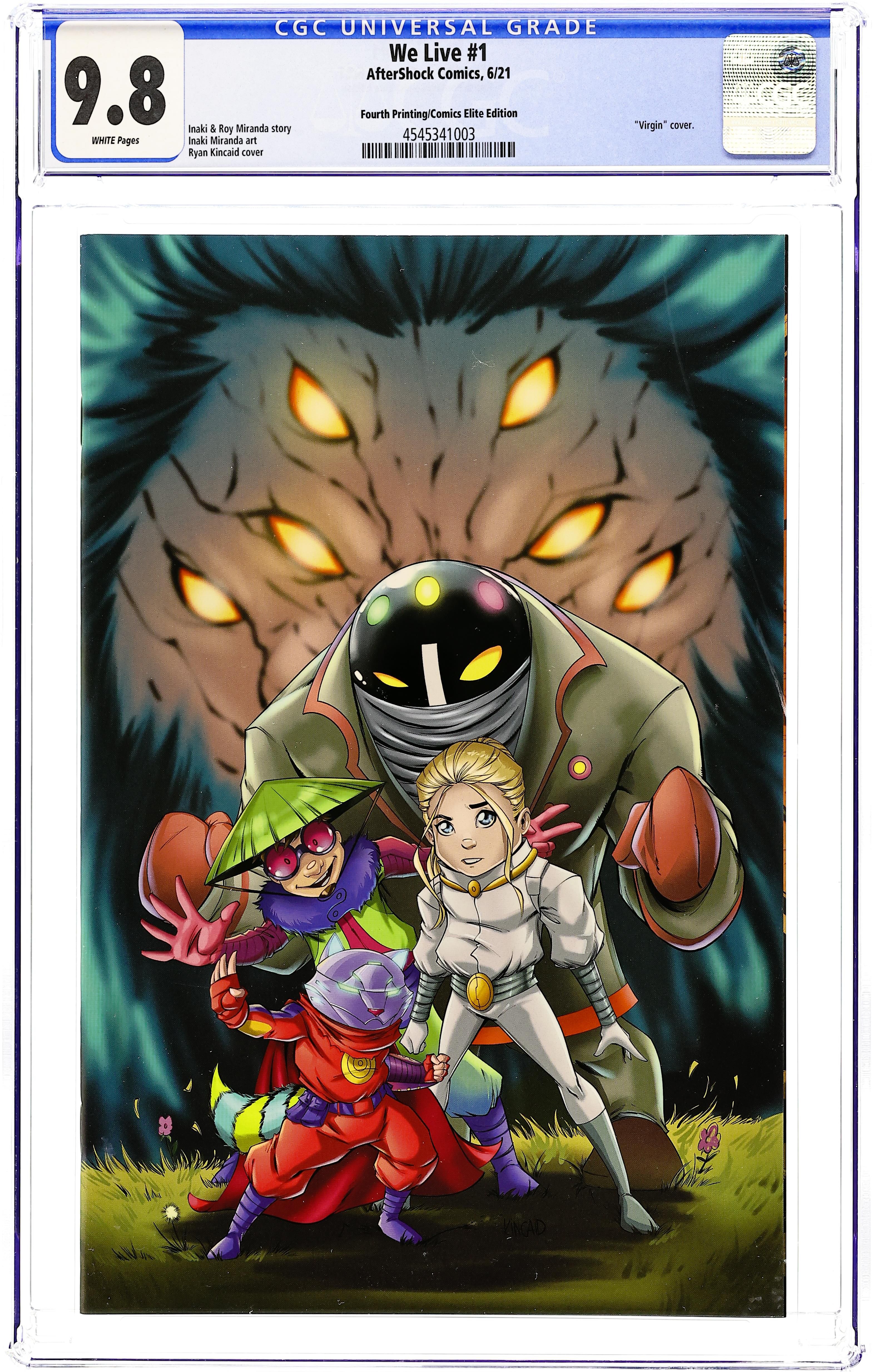 4th Printing. Comics Elite exclusive Virgin Cover by Ryan Kincaid. Written by Roy Miranda and Inaki Miranda. Art by Inaki Miranda. The year is 2084 and the world has changed. Wracked by calamities and crawling with monsters, the last remaining humans face a dangerous existence. And now, the Earth has been sent a message from the deepest reaches of space - a dark countdown to the extinction of all humanity. But there is hope! Five thousand children will be rescued by these mysterious message-senders. This is the journey of Hototo, one of the lucky five thousand - but only if his teenage sister, Tala, can safely deliver him to the nearest Beacon before time runs out. WE DIE is a world of violence and beauty, a unique tale of the apocalypse as told by Inaki Miranda (Catwoman, Batman Beyond) and Roy Miranda, that invites both dread and hope. 32 pages, full color.