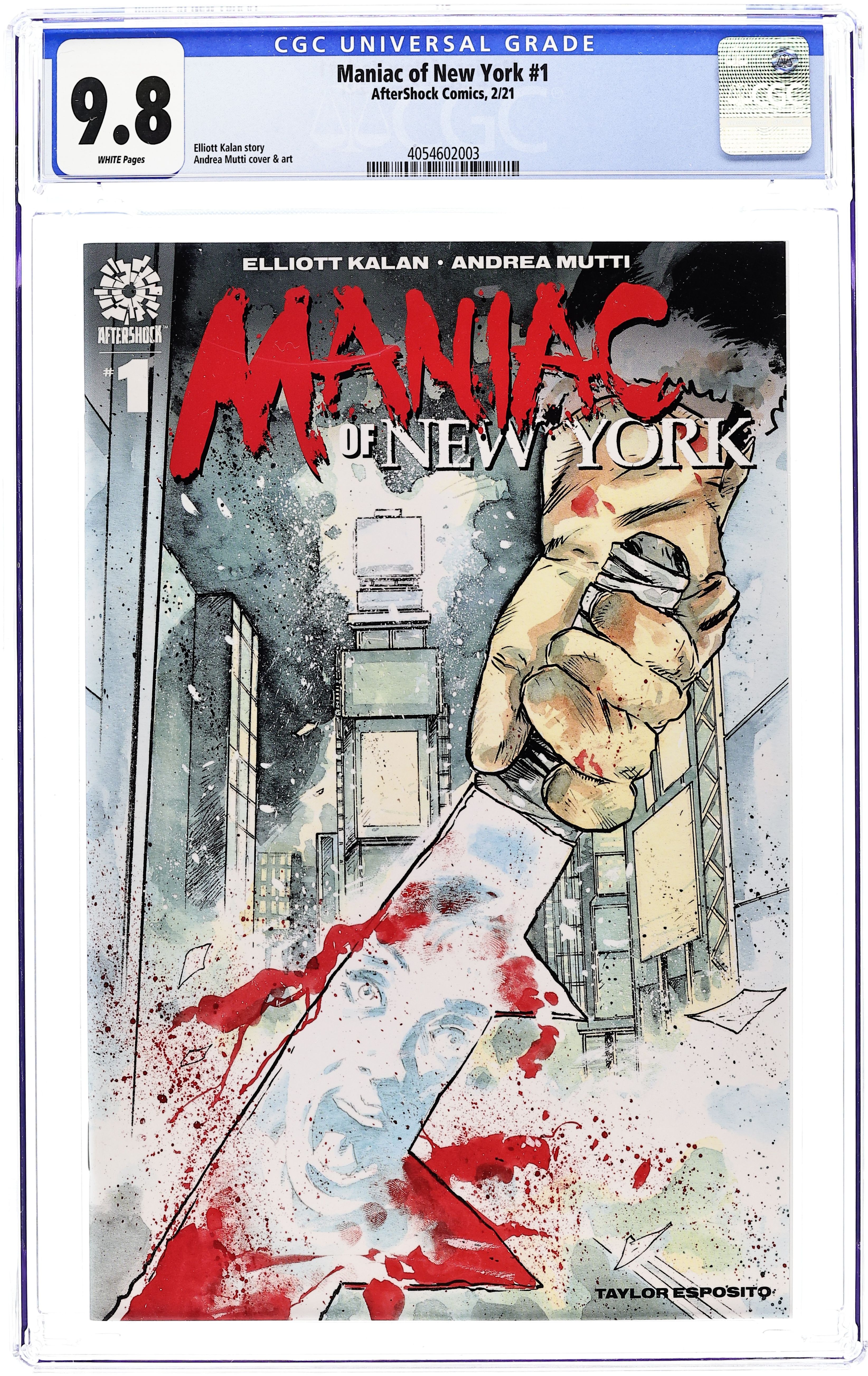 Written by Elliott Kalan. Art and Cover by Andrea Mutti. Four years ago, a masked slasher began stalking the streets of New York City. Maniac Harry is inhuman, unkillable and unstoppable. Which is why the authorities' solution has been to ignore him, and let New Yorkers adapt to a world where death can strike at any mo-ment. When Maniac Harry starts killing his way through the subway system, trauma-haunted political aide Gina Greene and disgraced NYPD detective Zelda Pettibone become determined to go rogue and destroy him. But how can they fight a monster when they can't fight City Hall? From Emmy Award-winning writer Elliott Kalan (The Daily Show, MST3K, Spider-Man & The X-Men) and artist Andrea Mutti (Port of Earth, Hellblazer) comes the horrifying story of what happens when terror becomes the new normal. A frightening, thought-provoking, sometimes funny, always timely tale of murder, obsession and urban living. 32 pages, full color. Cover price $4.99.
