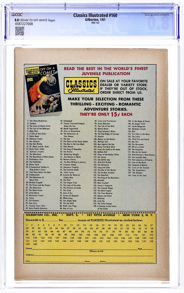 Published Jan 1961 by Classics Illustrated.Classics Illustrated 160 The Food of the Gods (1961) 1B CGC 8.0 HRN 160 Variant