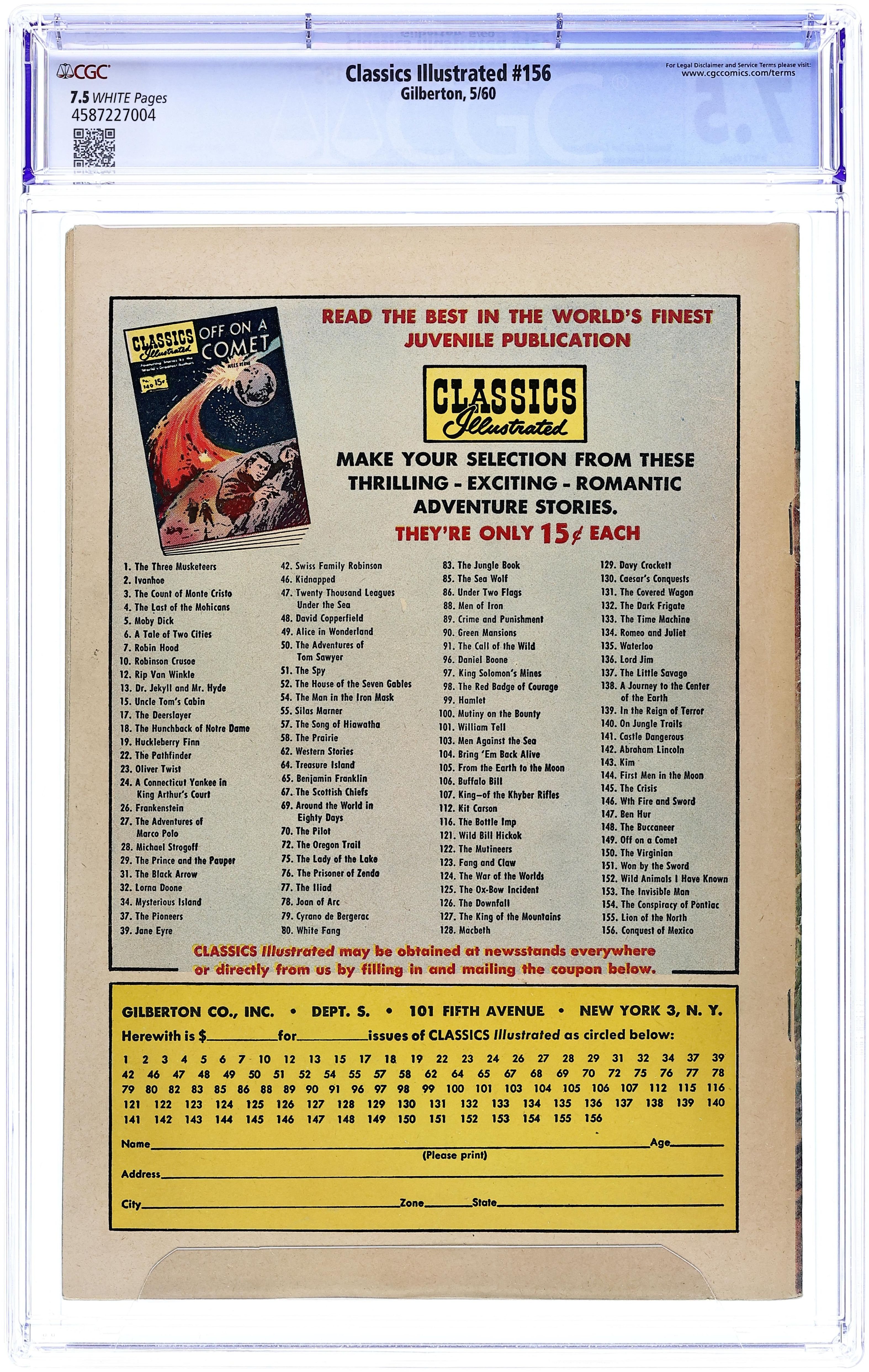 Published May 1960 by Classics Illustrated.Classics Illustrated 156 The Conquest of Mexico (1960) 1 CGC 7.5
